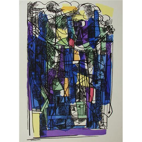 Abraham Rattner (1893-1978) Set of 3 Prints, Abstract, image size 16 1/4" x 9 1/2", signed in plate, Landscape, image size 12 1/4" x 9", unsigned, Abstract with Figures, image size 9 1/2" x 11", unsigned