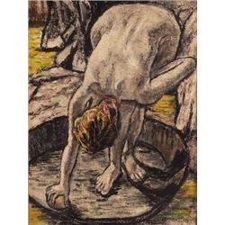 Abraham Rattner (American, 1895-1978), lot of two works, one pictured: “Bather”, c. 1960; ink, watercolor, and collage, 24” x 18”, signed; with another similar work of a rabbi.