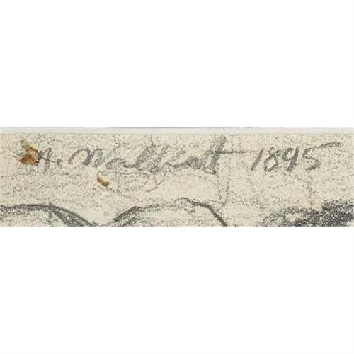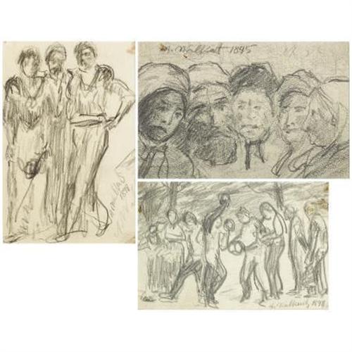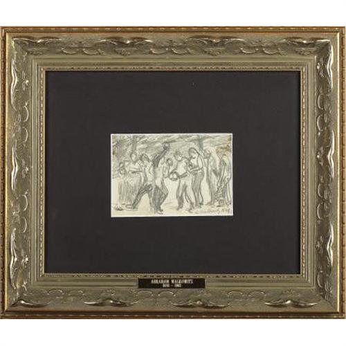 <B>ABRAHAM WALKOWITZ (American, 1880-1965)</B></I><BR><I>A Group of Three Figure Studies</B></I>, 1895-1899<BR>Pencil on paper<BR>3 x 4-1/2 inches (7.6 x 11.4 cm)<BR>Each signed lower right: <I>A. Walkowitz </B></I>and dated<BR> <BR>PROVENANCE:<BR>Sloans, Washington, DC, sale no. 891, lot 1267;<BR>Private collection, Dexter, Missouri<B>Condition Report:</B> 1/2 inch tear in drawing with a large group of people in the forest, otherwise good condition, not examined outside of frame.<BR><BR><b>Shipping:</b> Framed - with Glass, Small (<a target="_blank" href="http://www.heritageauctions.com/common/shipping.php">view shipping information</a>)