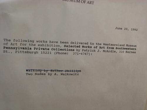 Provenance:  Two Nudes was exhibited at the Westmoreland Museum of Art, Greensburg, PA