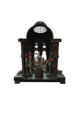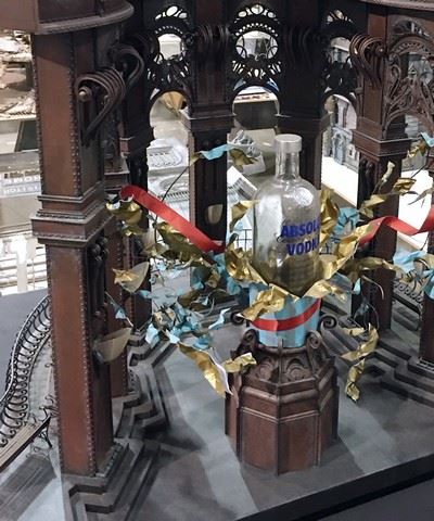 This set was created as a completely in-camera environment for the an Absolut Vodka Print Campaign. Designed by New Deal Studios co-founder, Matthew Gratzner, the set was created to be shot with no post manipulation, including shooting in front of a backing. The only work done in post was painting out the wires that supported the shredded wrapping paper exploding from the bottle. Fabricated from wood, laser cut acrylic, cast resin and rapid prototyped components. Also includes framed poster of finished advertisement and raised base. 36" long x 36" tall. 1:17 scale.