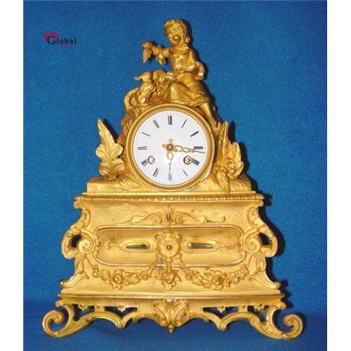 This eye catching bronze gilt mantel clock is just the thing to bring some high end designer style to your space! We are very excited to offer you this marvellous mantel clock that dates from the third quarter of the 19th C. (c. 1870).The dial is porcelain with original brass gilt hands and has a silk suspension pendulum.The bronze gilt is in perfect condition and the clock work in fine working order.The clock work is signed: "Taveau Freres Paris".On the top of the clock is a lovely girl who is feeding a rabbit.The dimensions are:Height 13 Inches, Width: 10 Inches and Depth 5 Inches.This clock is everywhere, and on every chimney or board an absolutely eye catcher, and a real collector piece that you will never get again.This fantastc mantel clock came out a very fine estate in the South of France near Marseille. Regarding shipping we will pack the clock in a wooden crate so you will receive it without damage. Shippingscosts to the U.S.A. are 185 US$. After payment you will receive the clock in about 4 days. This is a very nice clock for the collector or someone wanting an unusual clock that no one else has!!Thank you for looking this marvellous mantel clock.