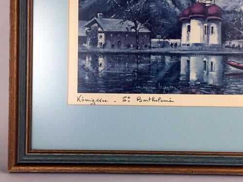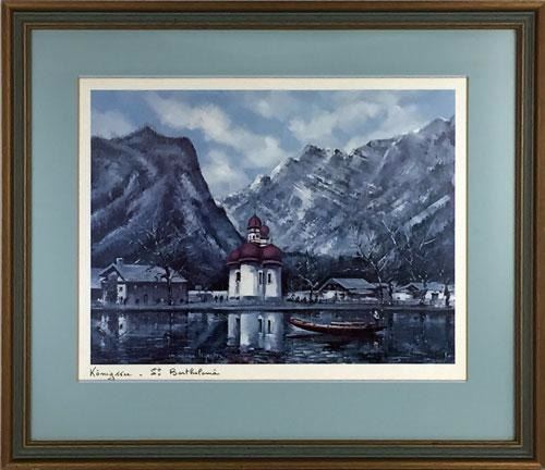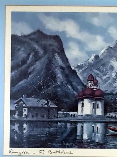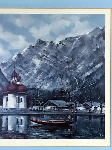 Absolutely Captivating Gravure, Catholic Pilgrimage Site in Germany. Beautifully matted and framed gravure. Charming Maurice Legendre ( 1878-1955) framed gravure depicting the catholic pilgrimage church of saint Bartholomew on picturesque lake Konigssee ( kings lake ) in southern Bavaria near the Austrian border and city Af Salzburg. The church is accessible only by ship or an exhausting hike, and is the site of an annual august pilgrimage. Maurice Legendre ( 1978-1955 ) was an award-winning french impressionist and sculpture, especially known for his rendering of Parisian and London landmarks. A lovely memento matted and framed, ready to hang. Size: 20X18 inches. Country of origin: France.