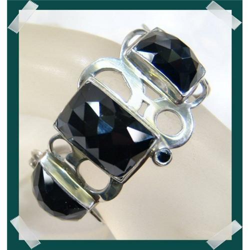 PLEASE NOTE I only ship to Canada and USA. If paypals is used the address MUST be confirmed and I require a signature on all paypals shipments. Thanks Steven. <P>An absolutely stunning bracelet for those that adorn the mystical power of midnight black onyx gemstones. Three large FULLY faceted black onyx gemstones adorn this sterling silver cuff bracelet. The bracelet is fashioned in a bold modern design and is hallmarked 925 sterling. The cuff bracelet has a height of 35mm or approximately 1.5". The gram weight is substantial weighing in at 59 grams. With an inside measurement of 5" with a 1.5" opening I believe it would be best suited for a 5" to 6" wrist.