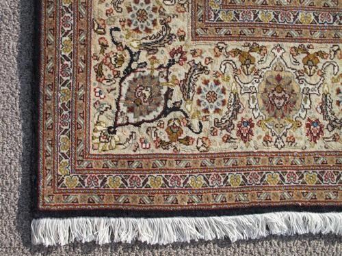 Rug: Handmade Persian Tabriz Mahi(Fish) Design w/Silk Highlights Rug Material: Made of the finest quality baby lamb's wool and silk pile, all natural vegetable dye Size: 9.6 x 6.9 feet Foundation: Cotton Design: Persian Tabriz Mahi(Fish) Origin: Tabriz, Iran