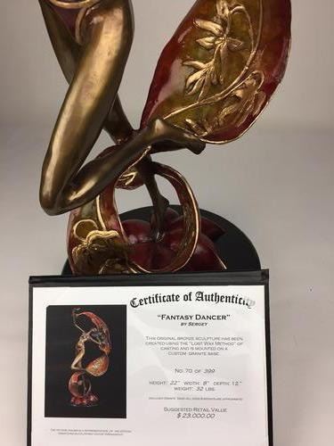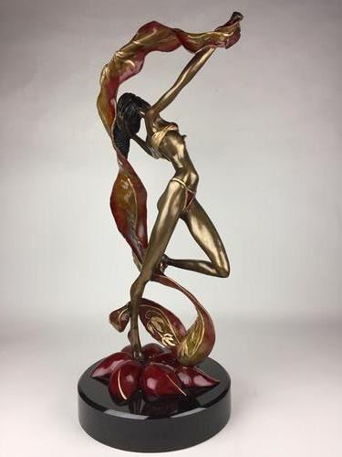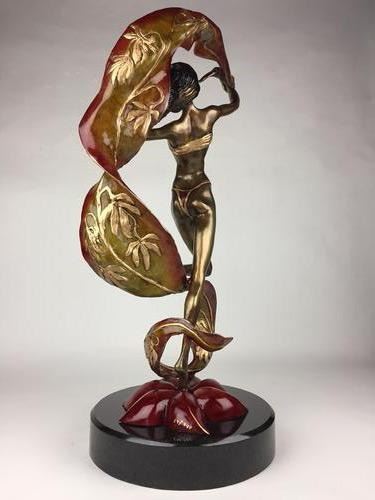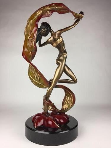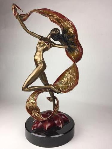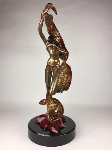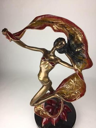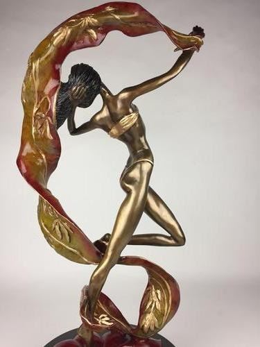 Absolutely Lovely French Bronze Sculpture. Original French bronze sculpture on marble base. This darling original French bronze sculpture, emanates a certain elegance and pride from the pose of the dancing lady along with her beautifully sculpted twisting band overhead. It is noteworthy that this original bronze sculpture has been created using the lost wax method. Size: 24X12X6 inches. Country of Origin: France