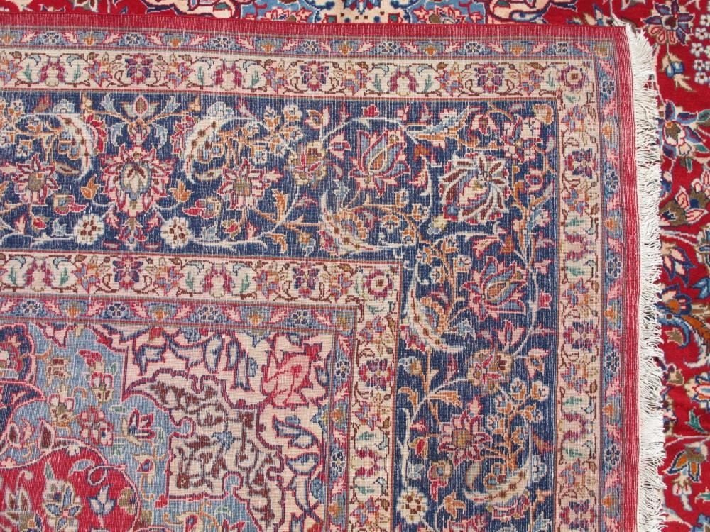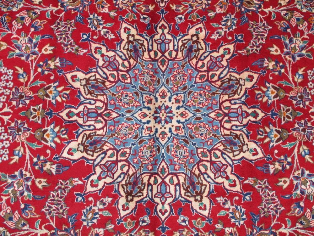 Rug: Handmade Authentic Persian Isfahan; Material: Made of the finest quality baby lamb's wool pile, all natural vegetable dye; Size: 13.4 x 10.0 feet; Foundation: Cotton; Design: Persian Isfahan; Origin: Iran