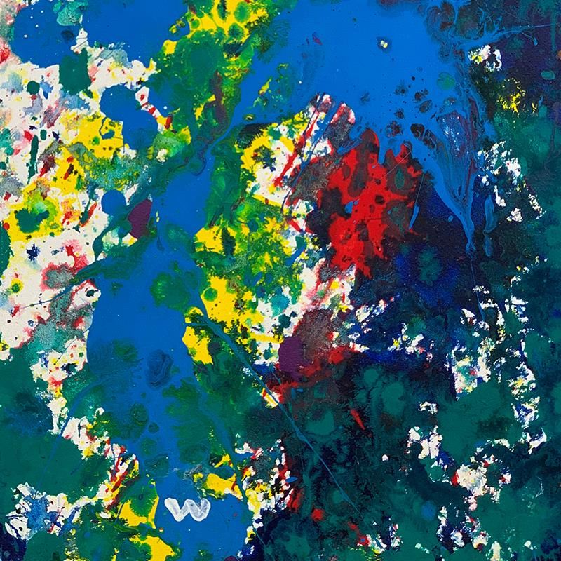 "Abstract 4" is an original painting on board by Wyland. Hand signed by the artist, this piece comes with a letter of authenticity. Measures approx. 36" x 36" (image).