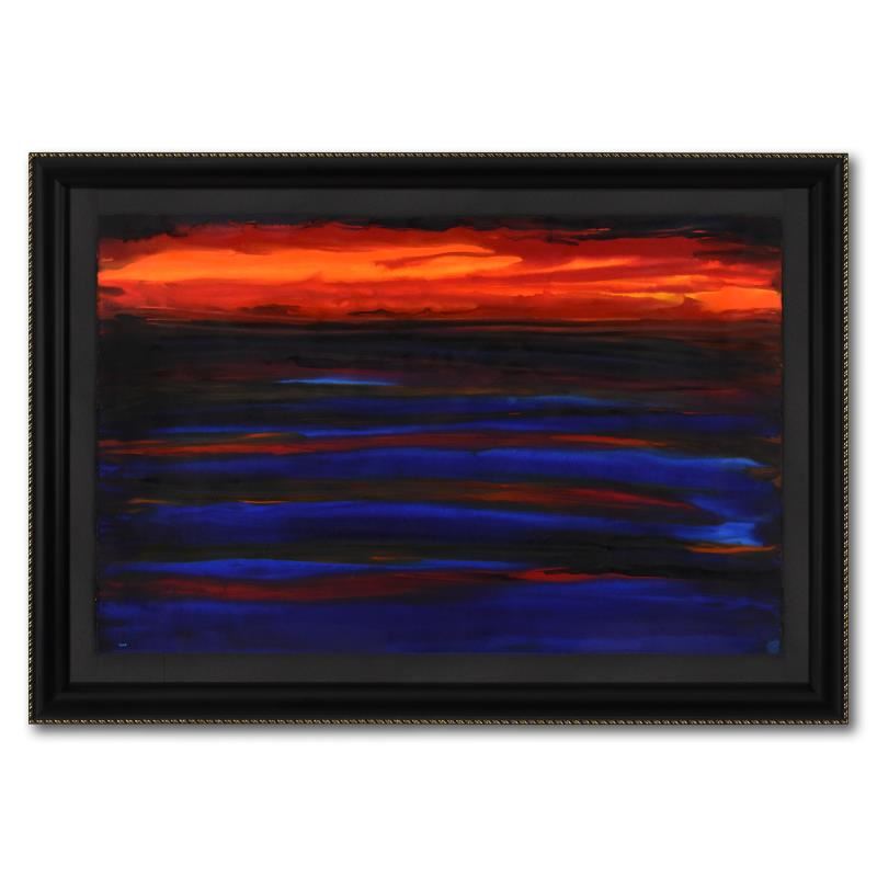 "Abstract 4" is an original watercolor painting on deckle edge paper by Wyland, hand signed by the artist. This piece comes custom framed. Includes Letter of Authenticity. Measures approx. 33" x 48.5" (framed), 26" x 40" (image).