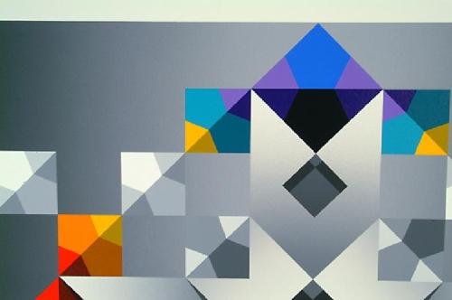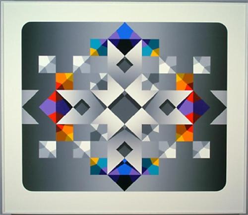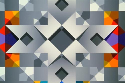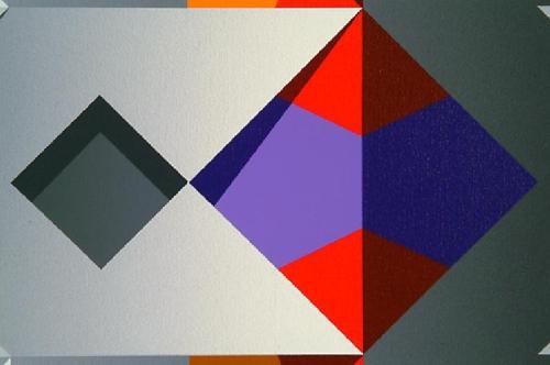 Spalatin, Marko. (Yugo/American 1945 -) Meridian, Acrylic on canvas, signed and label verso, 48" by 55 1/2". Spalatin was an important figure in the abstract geometric movement ca. 1950.