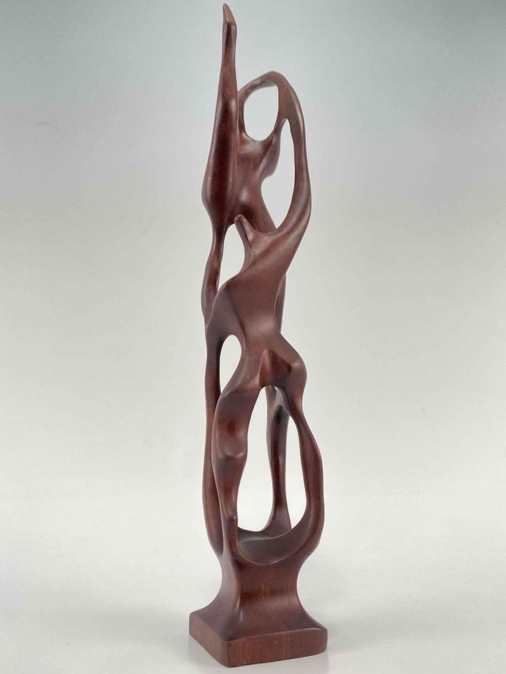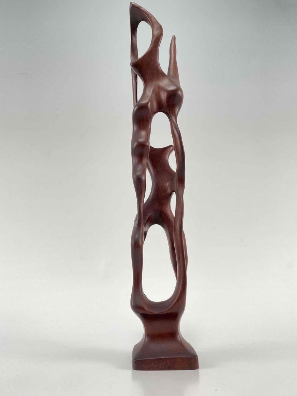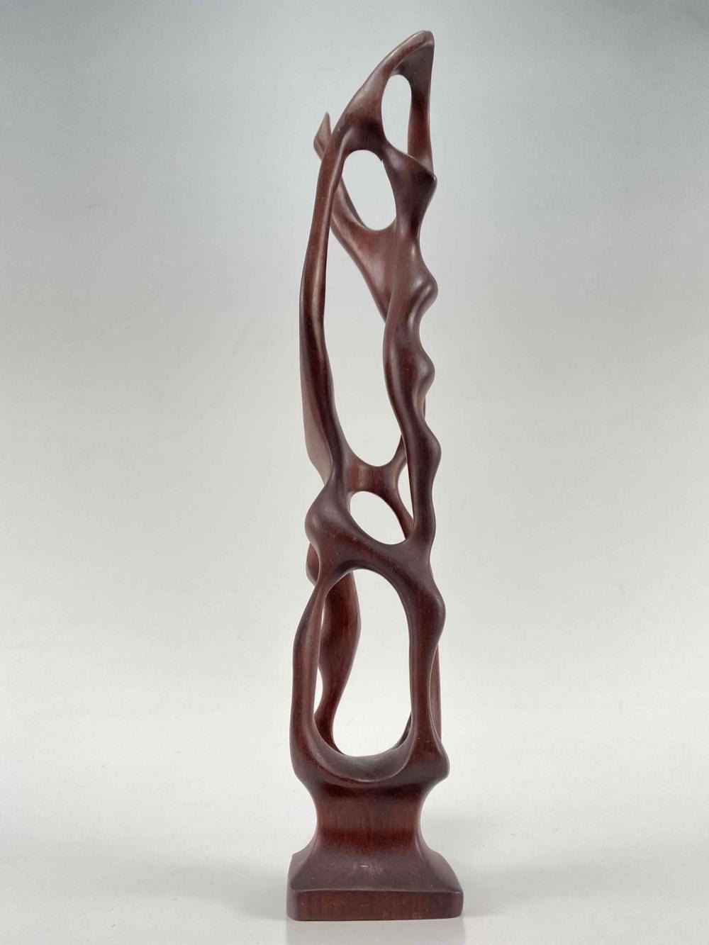 Abstract Biomorphic Mid Century Modern Modernist Wood Sculpture. Approximately 11.5625H x 1.75W x 2.0625D in.