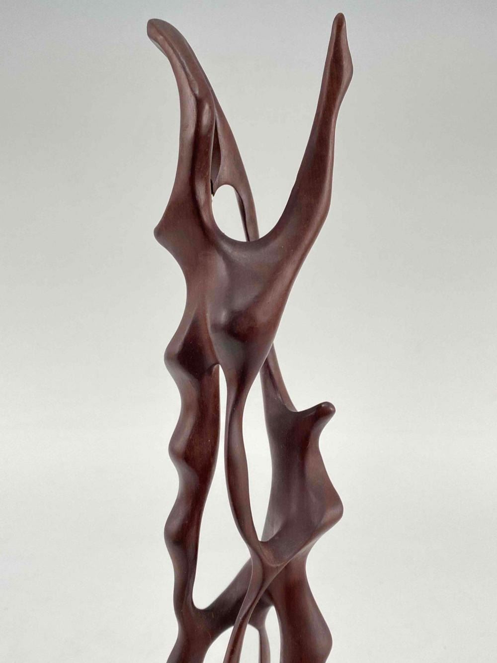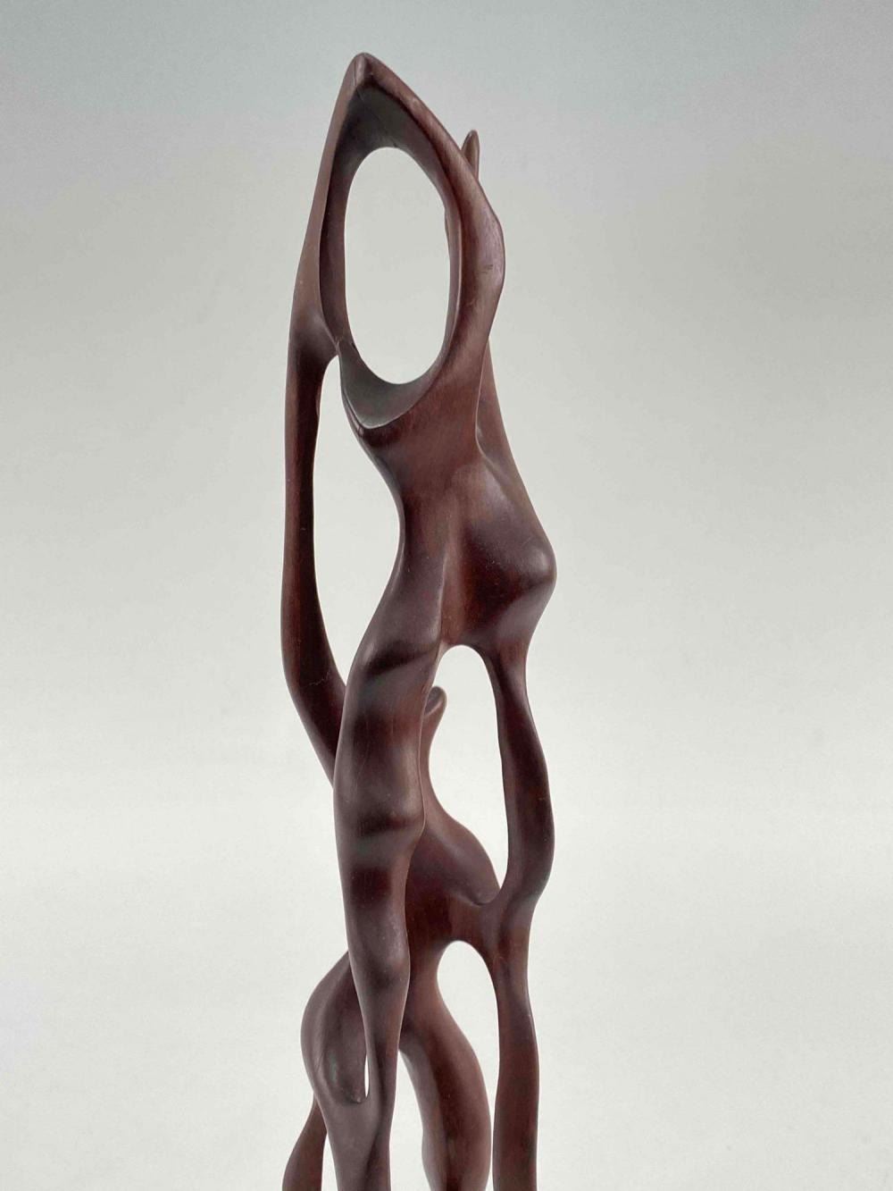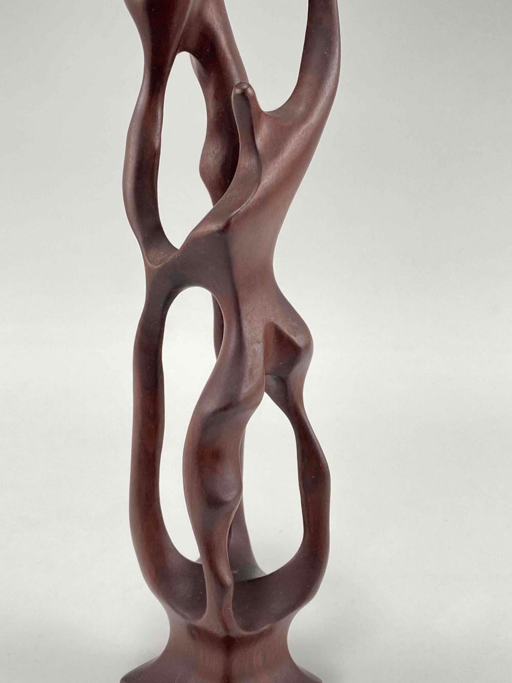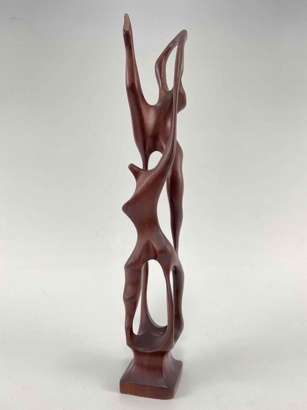 Abstract Biomorphic Mid Century Modern Modernist Wood Sculpture. Approximately 11.5625H x 1.75W x 2.0625D in.