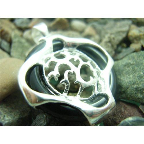 <tr><td>Title:Abstract Black Onyx Ring Sterling Silver Pendant</td></tr>