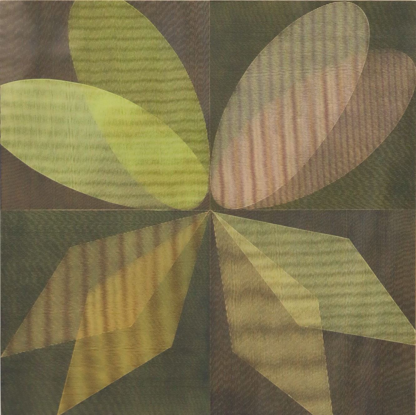 This colored lithograph looks like a dragonfly or expanded four-leaf clover and is done