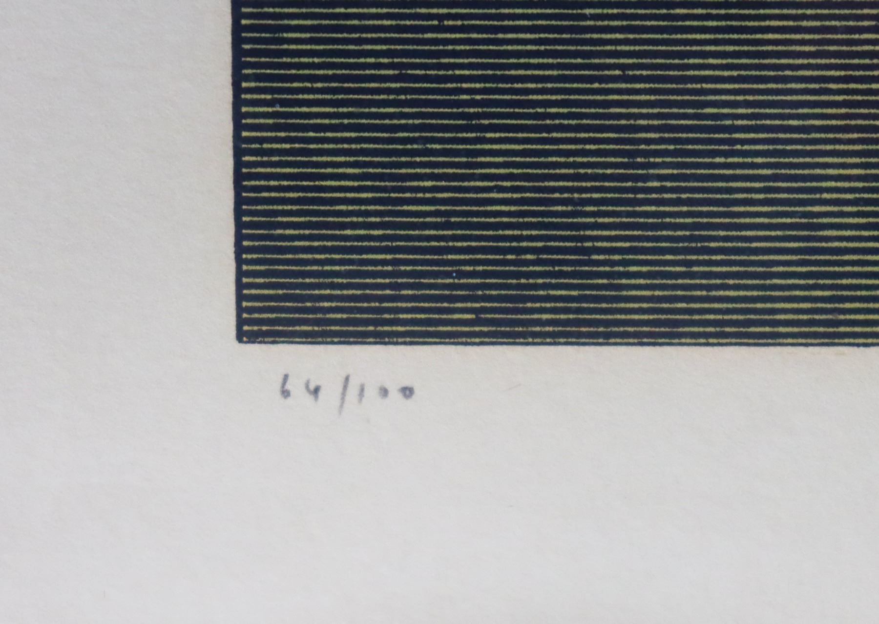 with very fine vertical and horizontal lines. It is numbered 64 of 100 in the lower left and