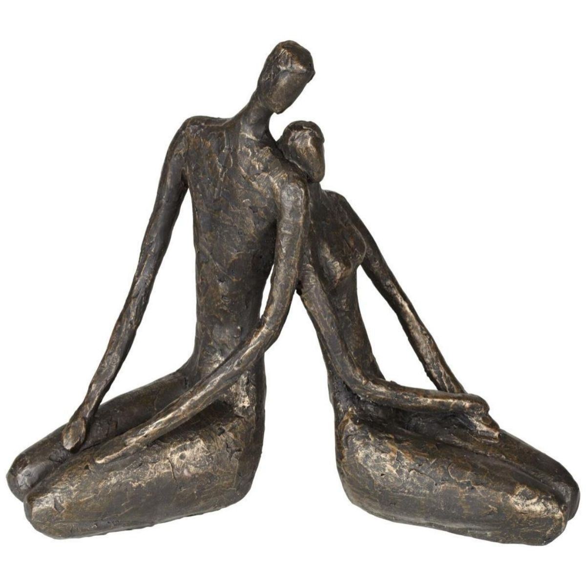 Modern, Abstract-style composition sculpture of a couple in love. Bronze finish over resin construction. 10" H X 11 1/2" W X 5 1/2" D.Â