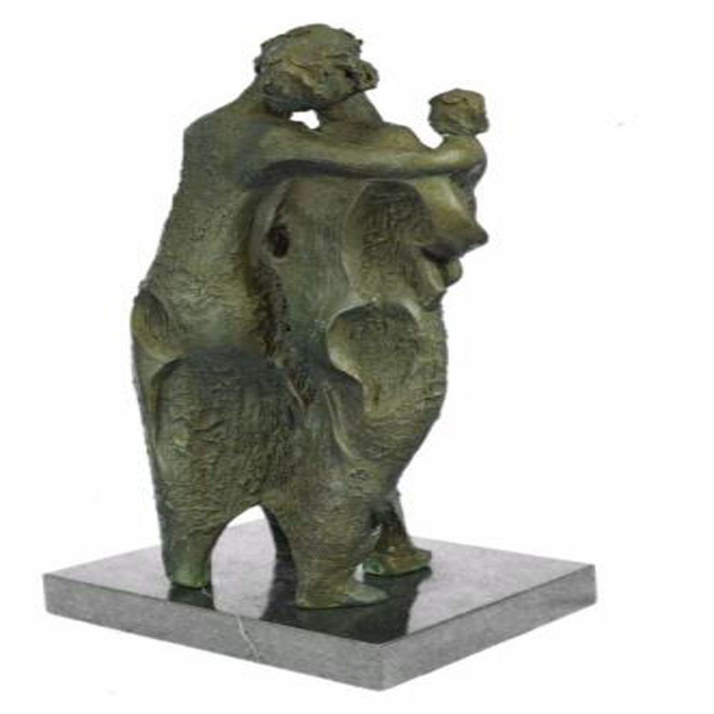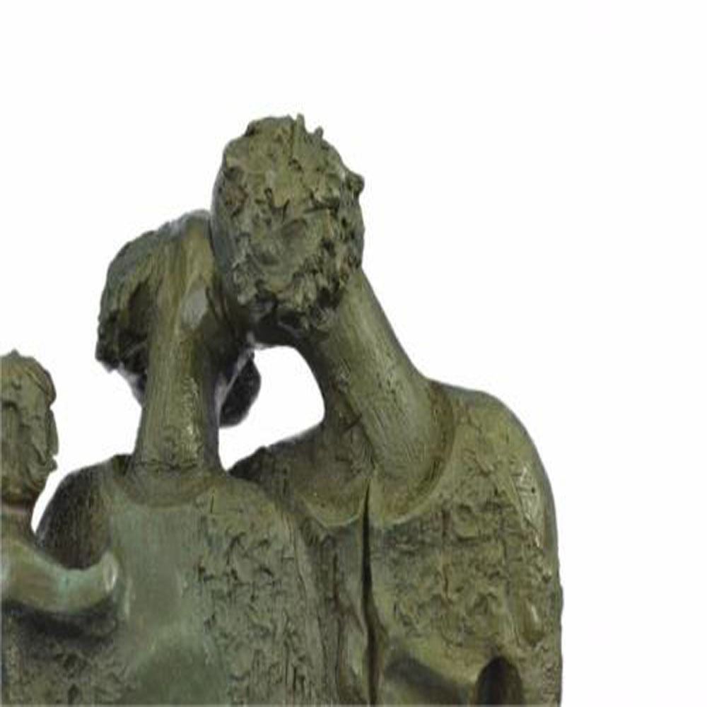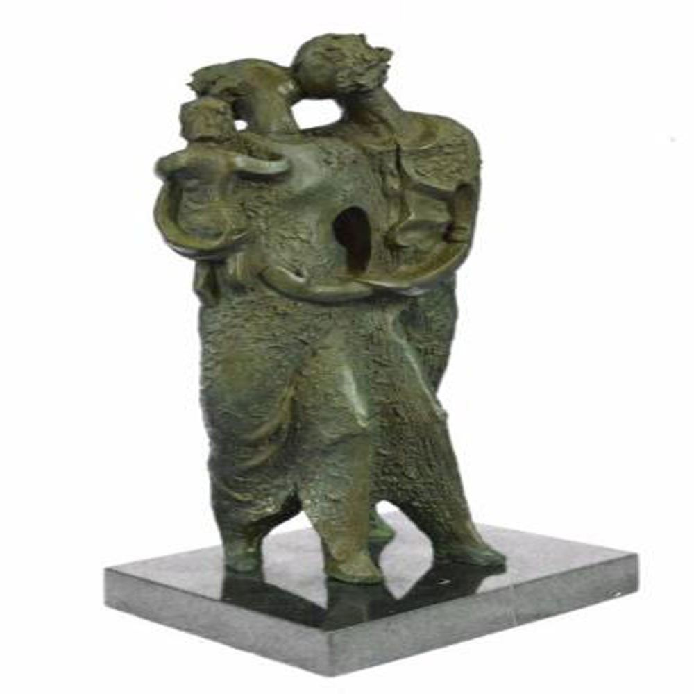 This abstract couple poses fora family picture. The lady of the house stand holding her baby. next to her, her husband stands casually with a hand over his wife’s shoulder. They are both dressed to impress, the husband in his finest suit and his wife also in a suit. This sculpture is in a brown patina and was cast using the Lost Wax Method and is firmly mounted on a marble base. Bronze Dimensions with Marble Base: Height 15 X Width 8 inches. Weight: 15 LBS.