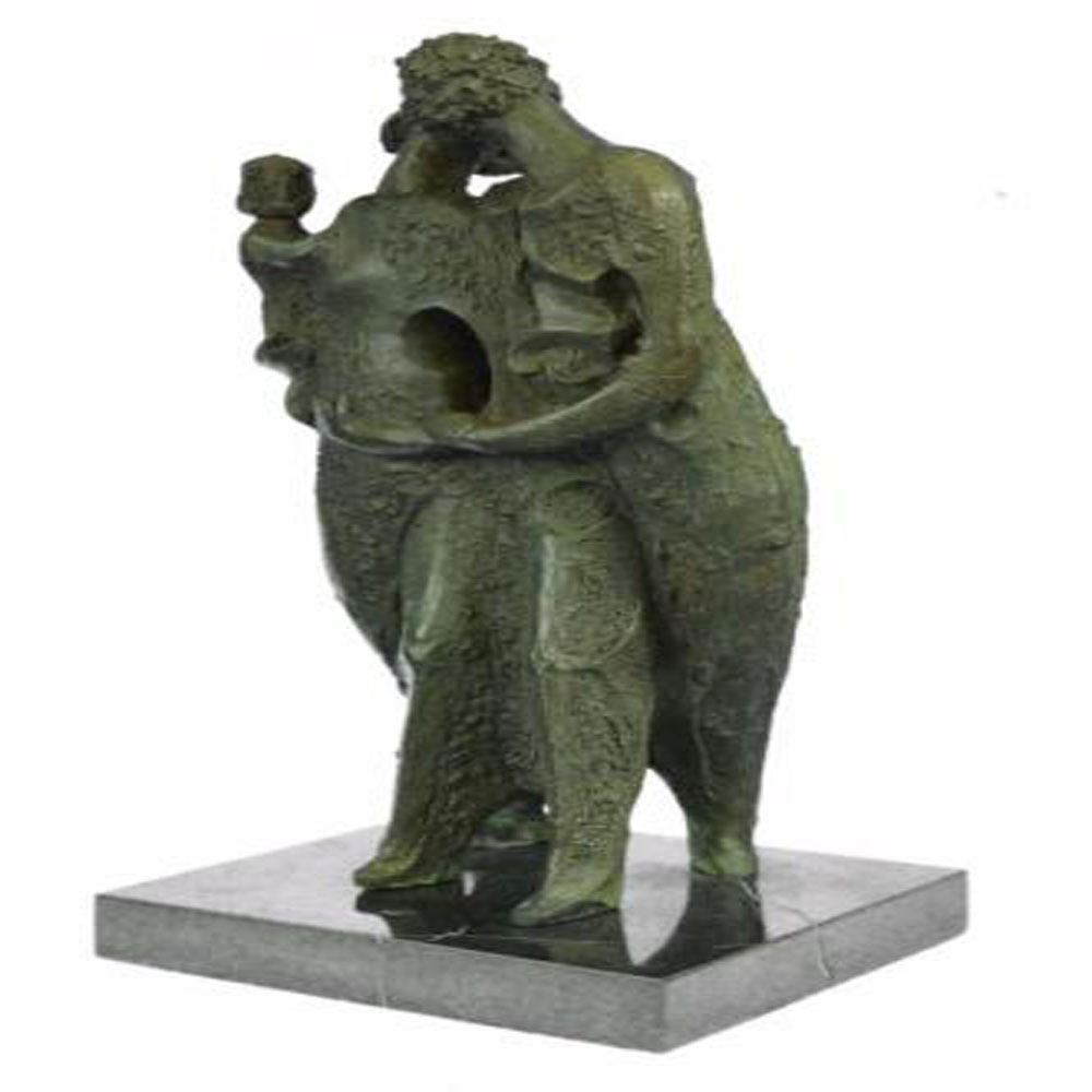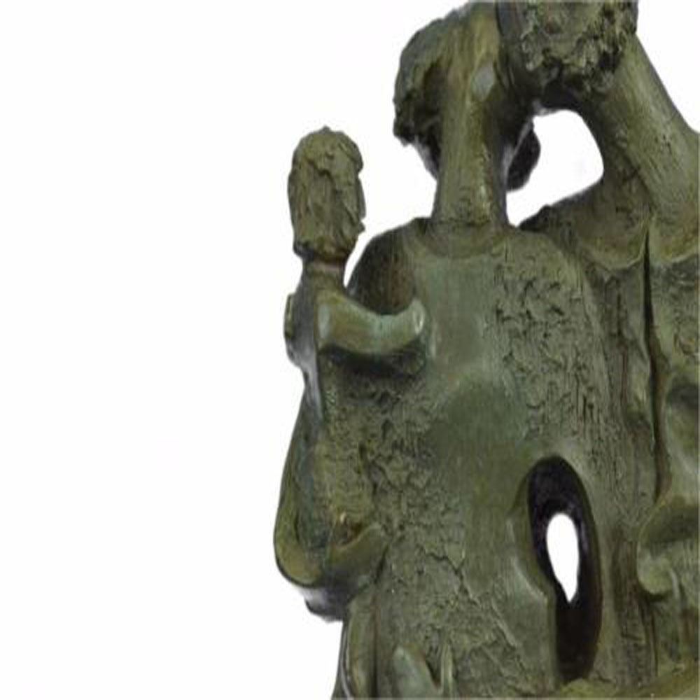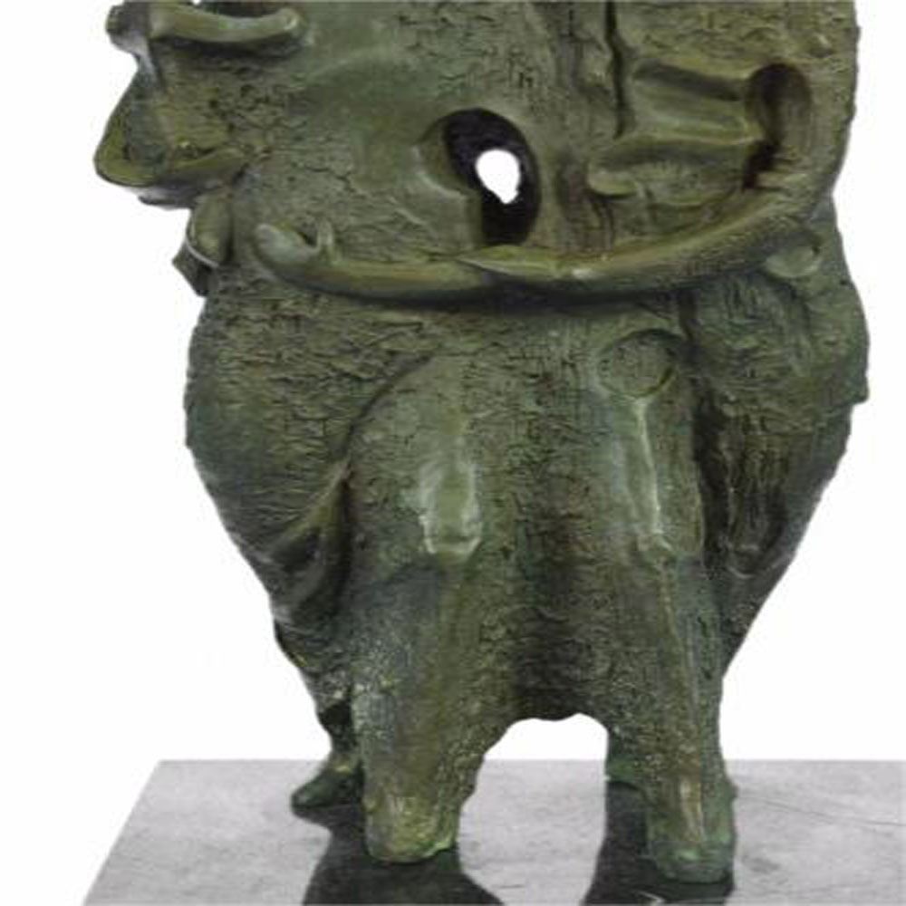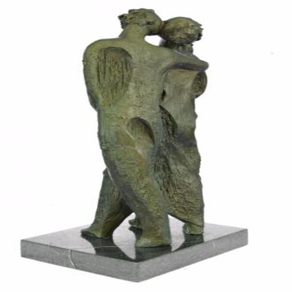 This abstract couple poses fora family picture. The lady of the house stand holding her baby. next to her, her husband stands casually with a hand over his wife’s shoulder. They are both dressed to impress, the husband in his finest suit and his wife also in a suit. This sculpture is in a brown patina and was cast using the Lost Wax Method and is firmly mounted on a marble base. Bronze Dimensions with Marble Base: Height 15 X Width 8 inches. Weight: 15 LBS.