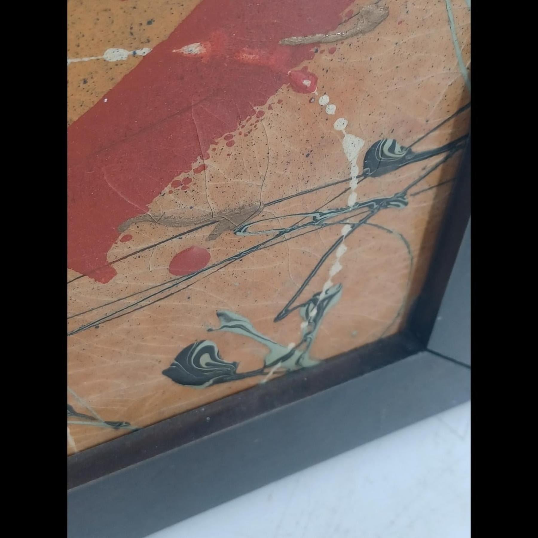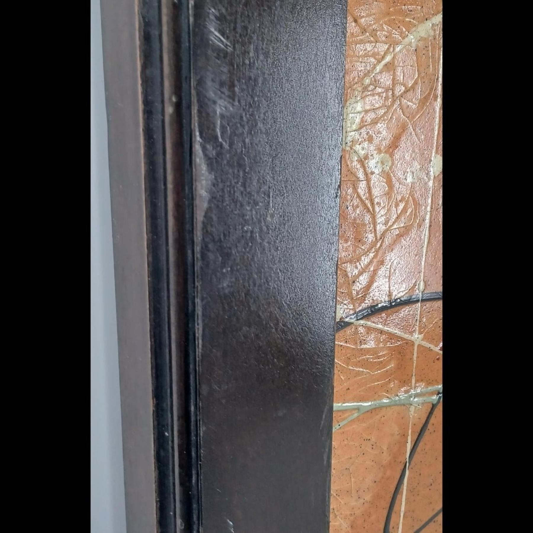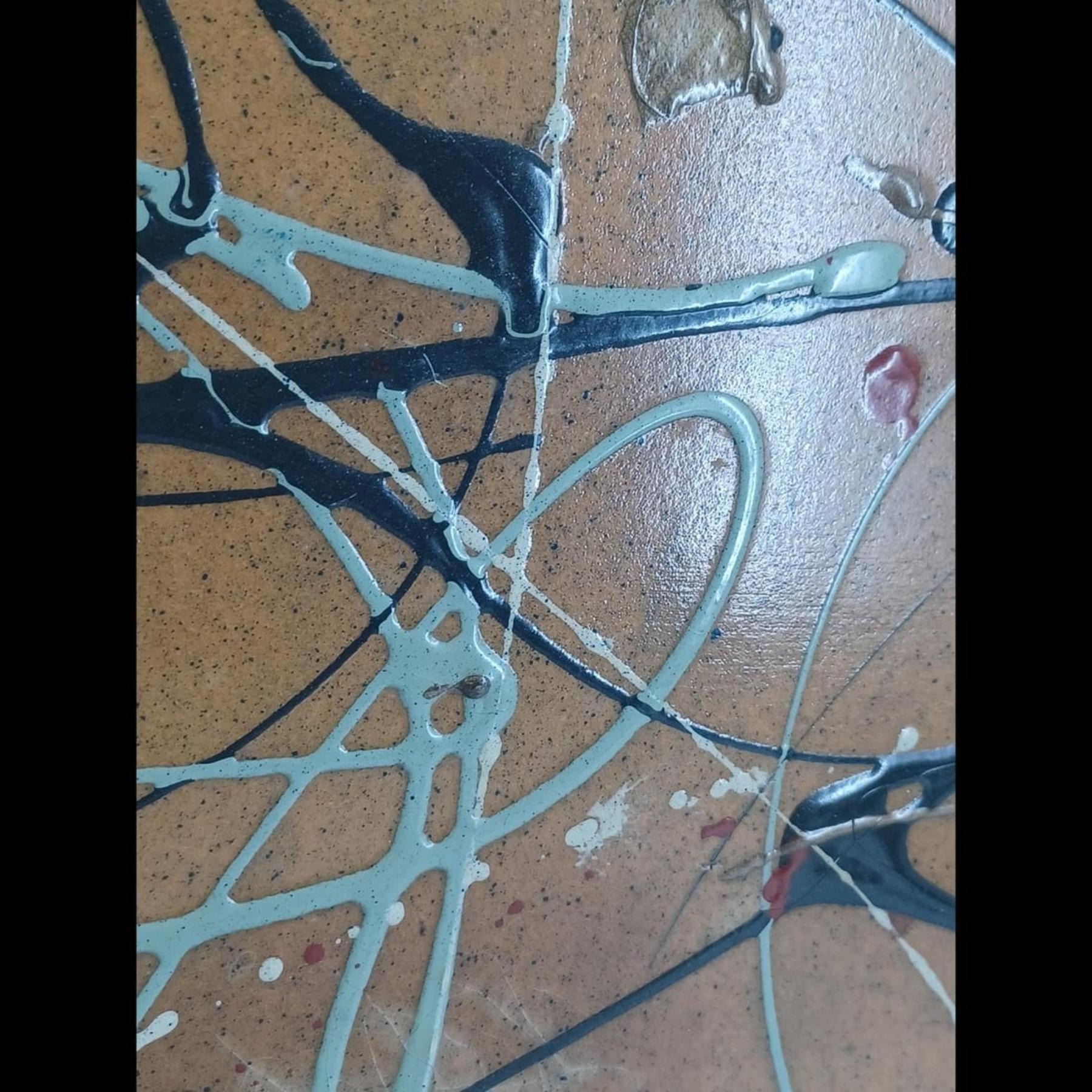 Abstract Expressionist Wood Panel Painting In The Style Of Jackson Pollock. Measures approximately 18-1/2" x 37-1/4" - tall and heavy piece.