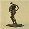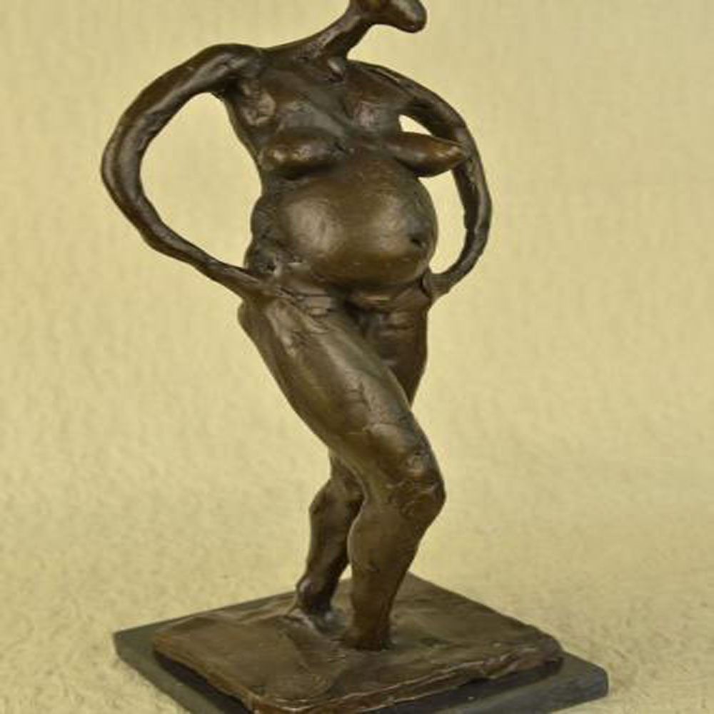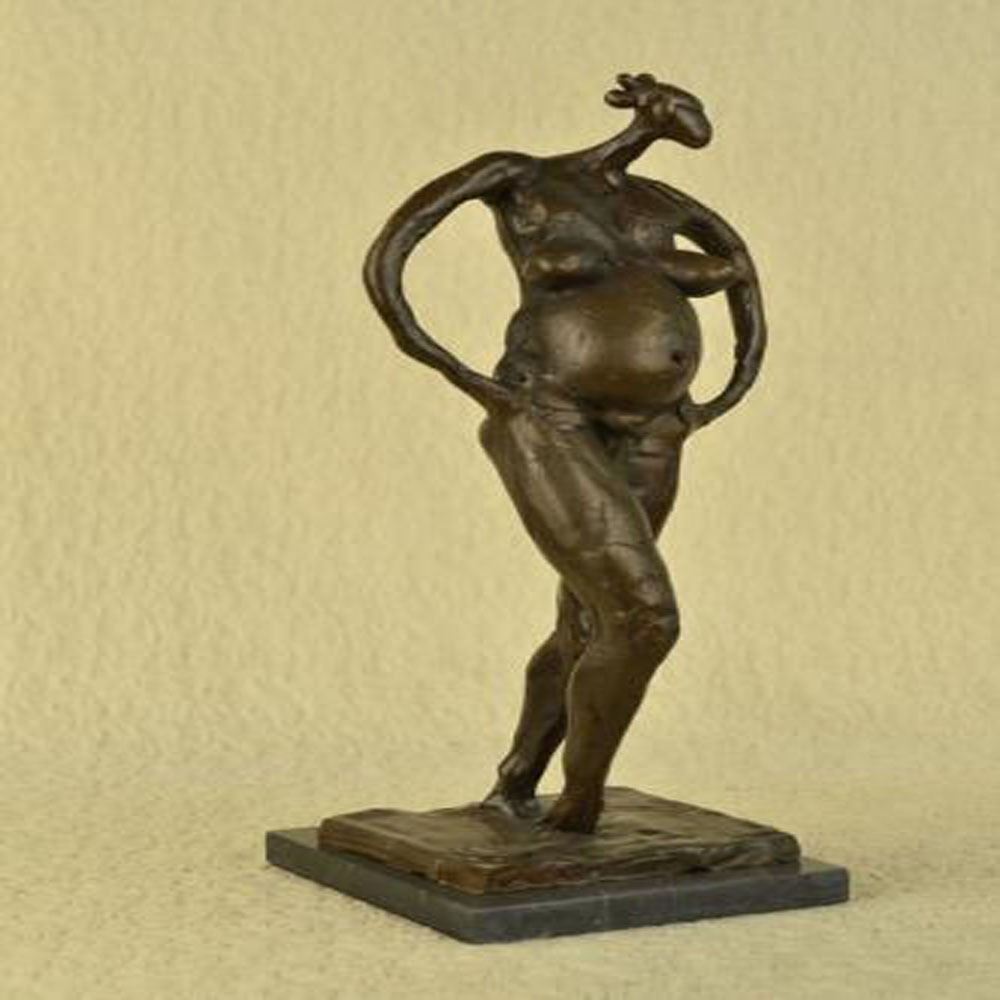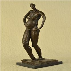 This abstract is a very odd and creative one. This figure of a pregnant woman, but the conversation on it will be mostly about how strange art its working its way through. She has an really big torso and her legs seem to be muscular, as that was the artist intentions. She does not come with arms and the rest of her body is made of different little shapes to imagine what your body actually looks like under skin. The sculpture was cast using the ancient old Lost Wax Method and stained in brown patina and is mounted atop a marble base. Bronze Dimensions with Marble Base: Height 16 X Width 6 Inches. Weight: 10 LBS.