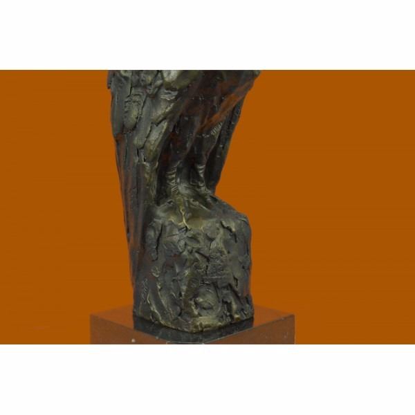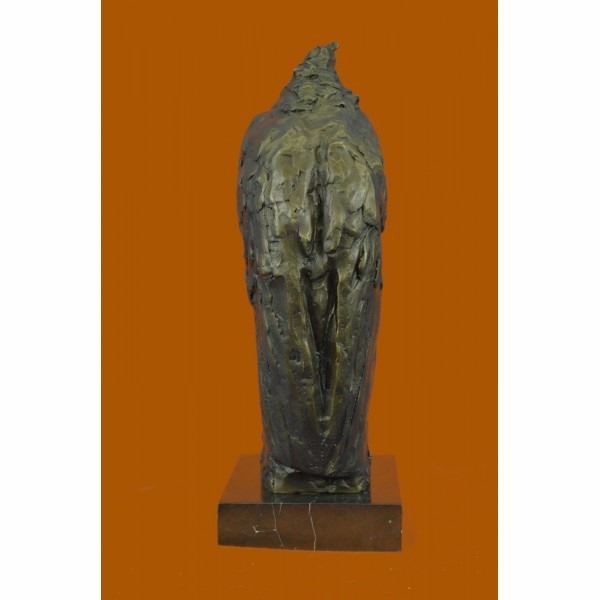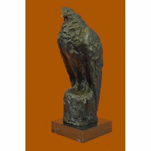 This Eagle Lets Time Pass By As He Rests Atop A Nest, He Watches Carefully As His Prey Comes At Close Range. He Sits Peacefully And Patiently As His Claws Are Spread Out Giving Him A Perfect Balance To Fly Off As Soon As He See Potential Food. His Feathers Are Even And All In The Same Shape Of An Oval, His Beak Has A Pointy And Sharp Look To It. This Is A 100% Bronze Cast By Using The Age-Old Method Of Lost-Wax Casting And Stained With A Brown Patina Finish. It Is Mounted, Along With Its Detailed Bronze Plinth, Upon A Marble Base With The Artist Milo Signature Condition: This sculpture is in perfect condition. Bronze Dimensions with Marble Base:Height 16" x Width 5.5" Marble Dimensions:5.5" X 5.5" Height without base: 15" Weight :12 LBS Inventory : 17AL1676271