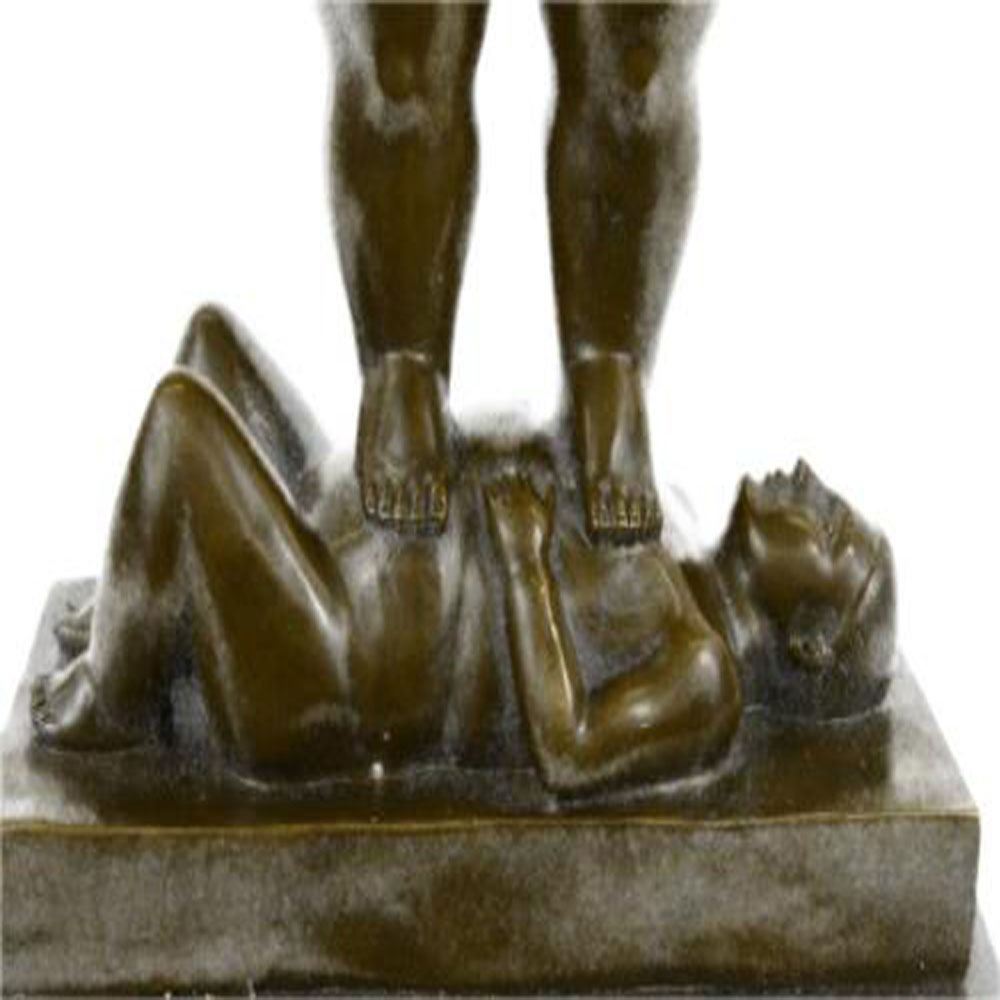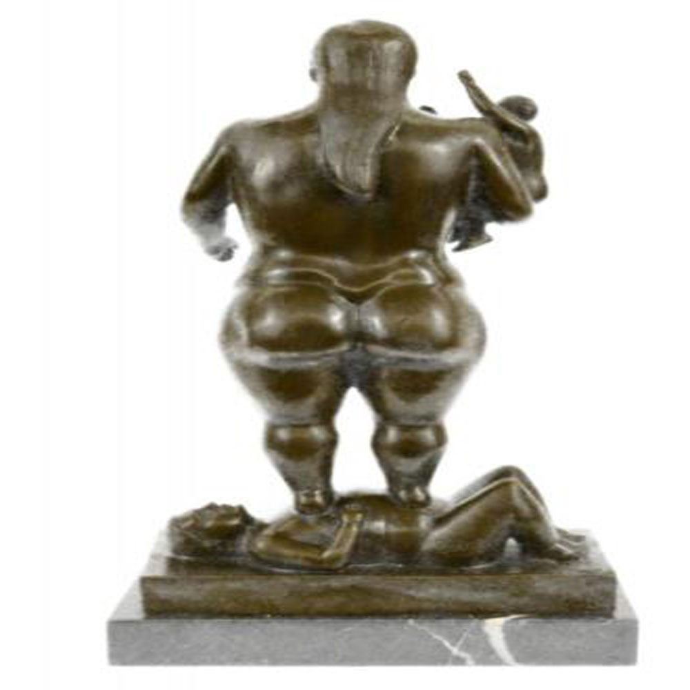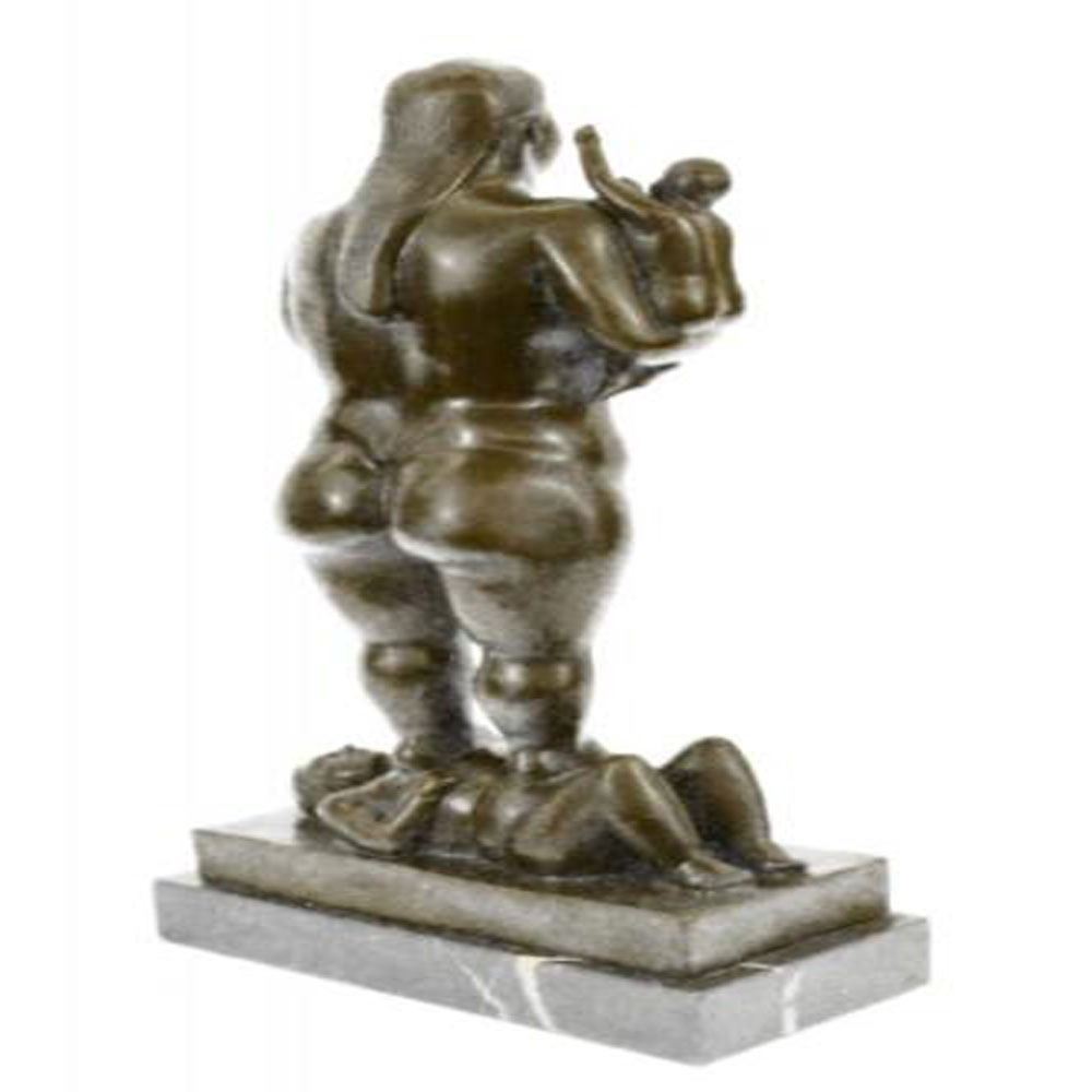 The beholder can be immediately drawn to the round and plump shape of the sculpture enough to want to run a handover the surfaces. This is a great work or art, She is a captured a lot larger than both her infant who sits on her strong arm and her husband who she is standing on top of. The structure represents a feminine portrayal with the difference sin size between pieces. They were captured using the age old method of lost wax casting and stained with a brown patina finish for perpetuation. The bronze sculpture is mounted upon a marble base. Bronze Dimensions with Marble Base: Height 17 X Width 10 Inches. Weight: 17 LBS.