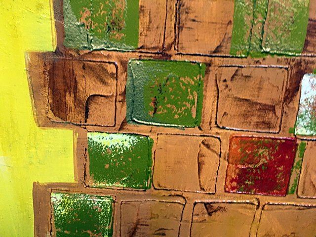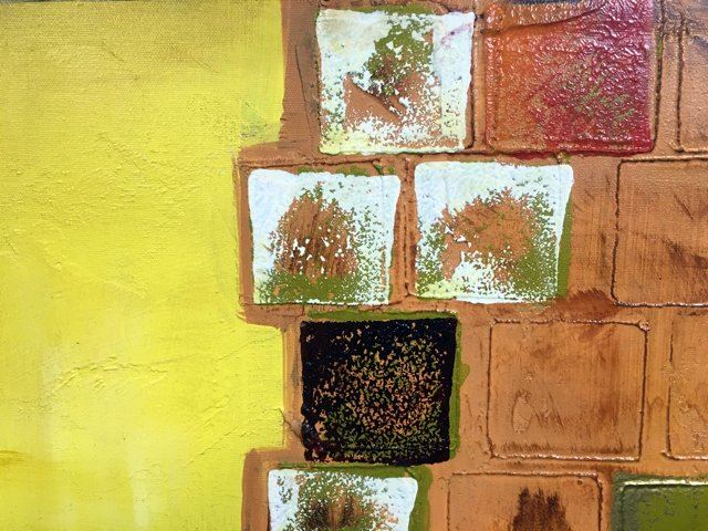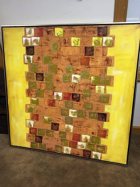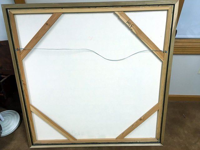 Signed abstract oil painting on canvas, framed, measures approx. 42" tall x 41" wide (frame size).