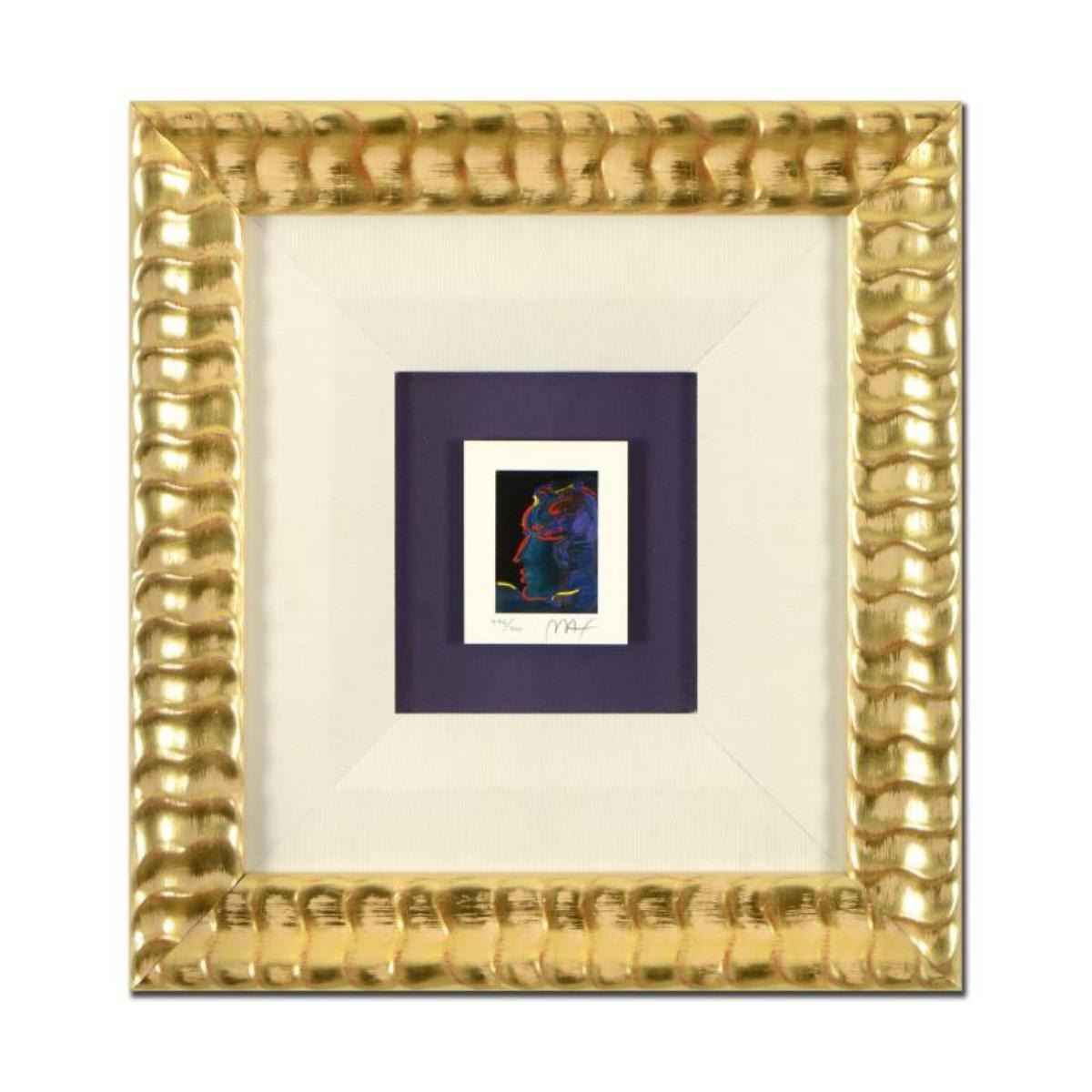 "Abstract Profile I" is a limited edition lithograph on paper by Peter Max, numbered 496/500 and hand signed by the artist. This piece comes framed and includes Certificate of Authenticity. Measures approximately 15.5" x 15" (frame), 3" x 3.5" (image).