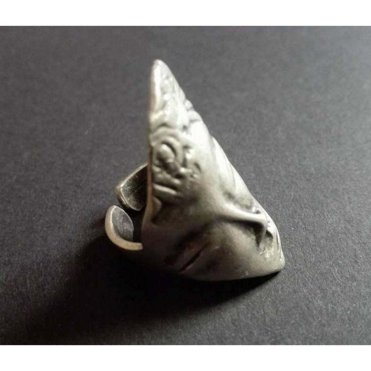 Abstract style, silver-plated, "Serene Face" adjustable size ring.Â