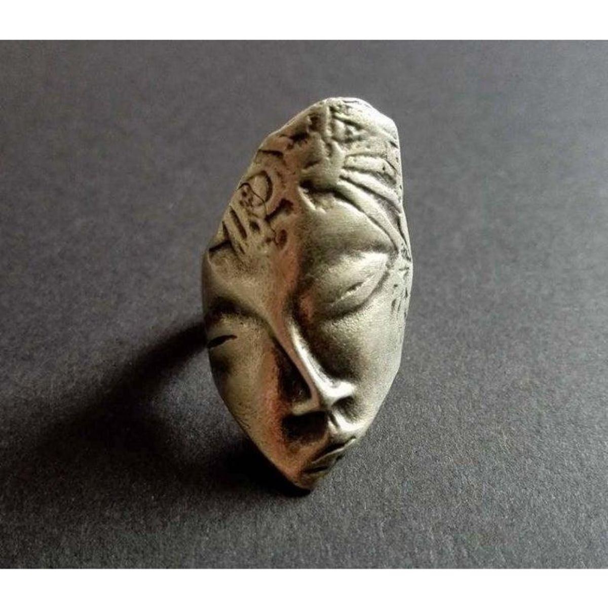 Abstract style, silver-plated, "Serene Face" adjustable size ring.Â
