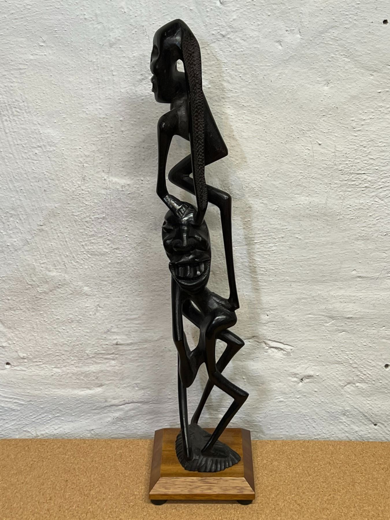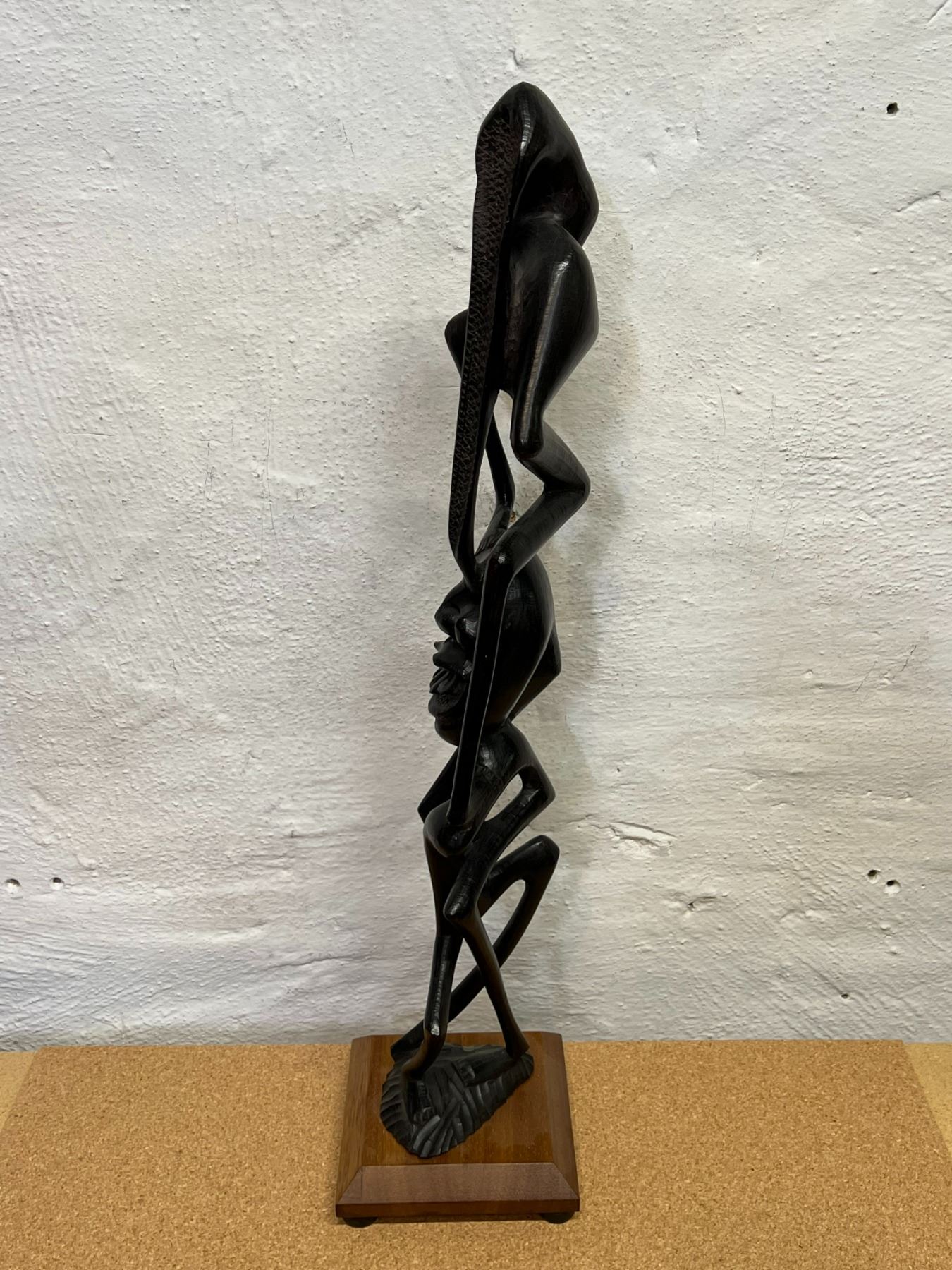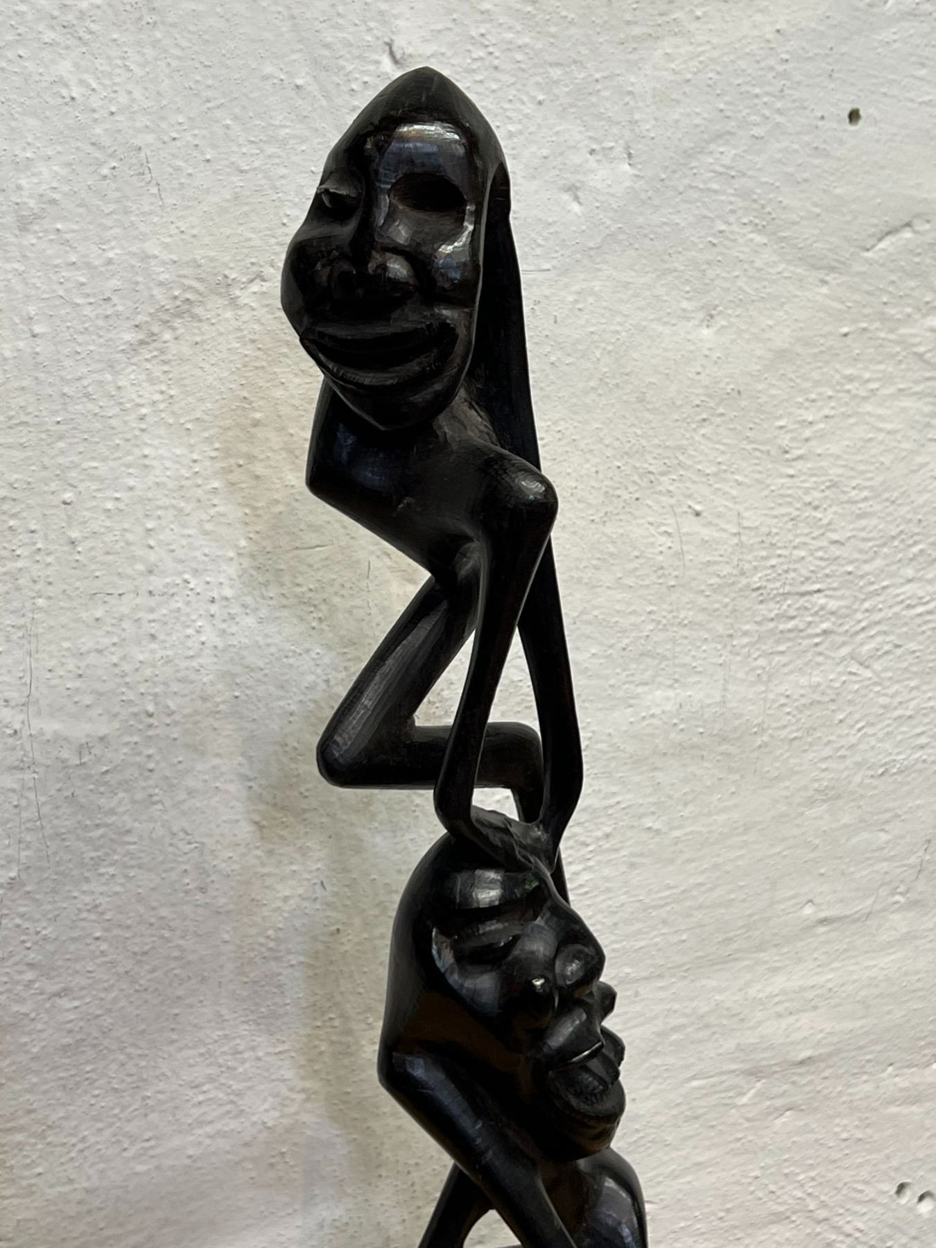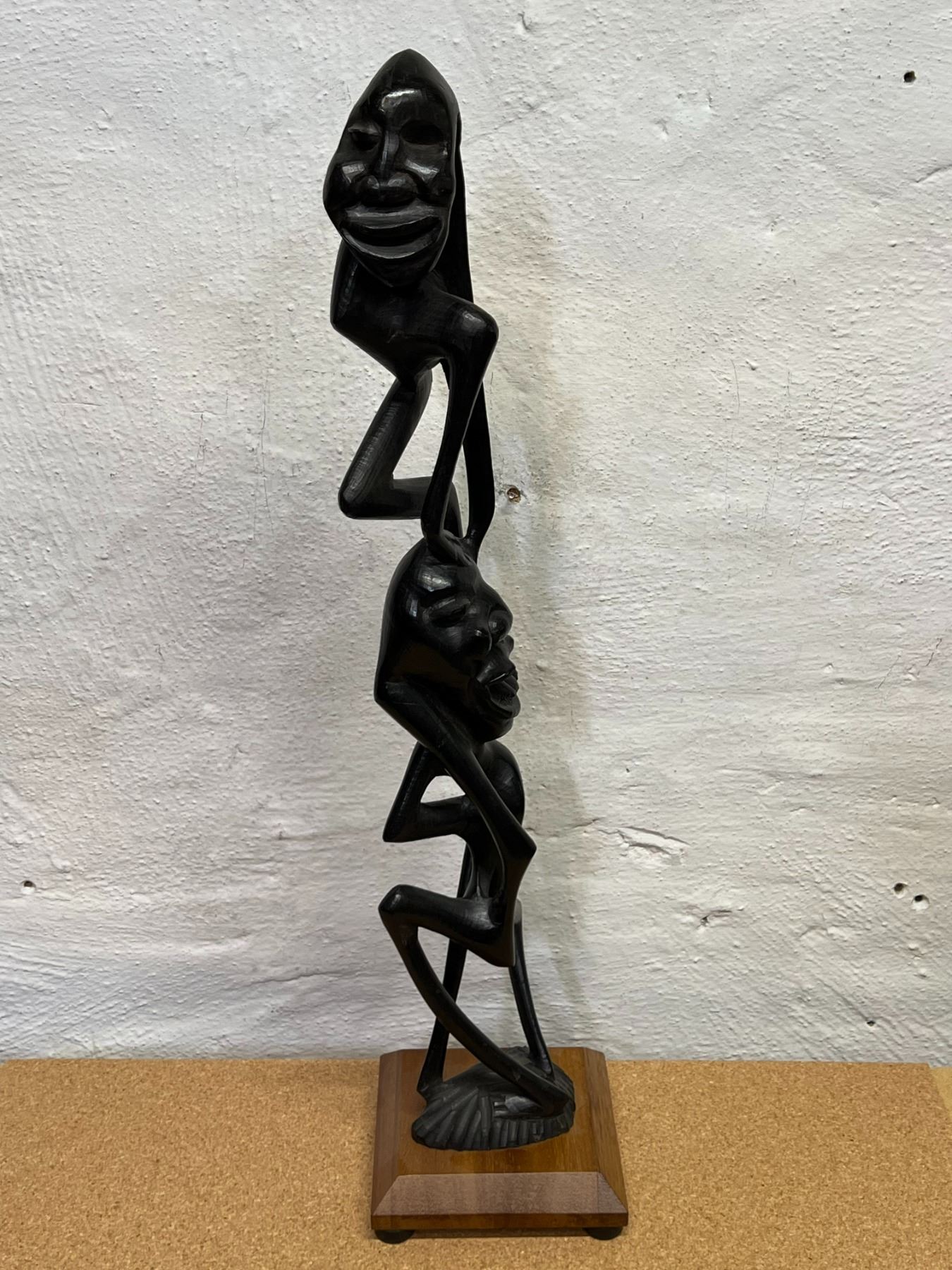 Base is about 5.5x5.5". Approximately 24.75" tall. Abstract Tribal Ebony? Wood Sculpture / Carving on Base (Approx: 24.75" tall)