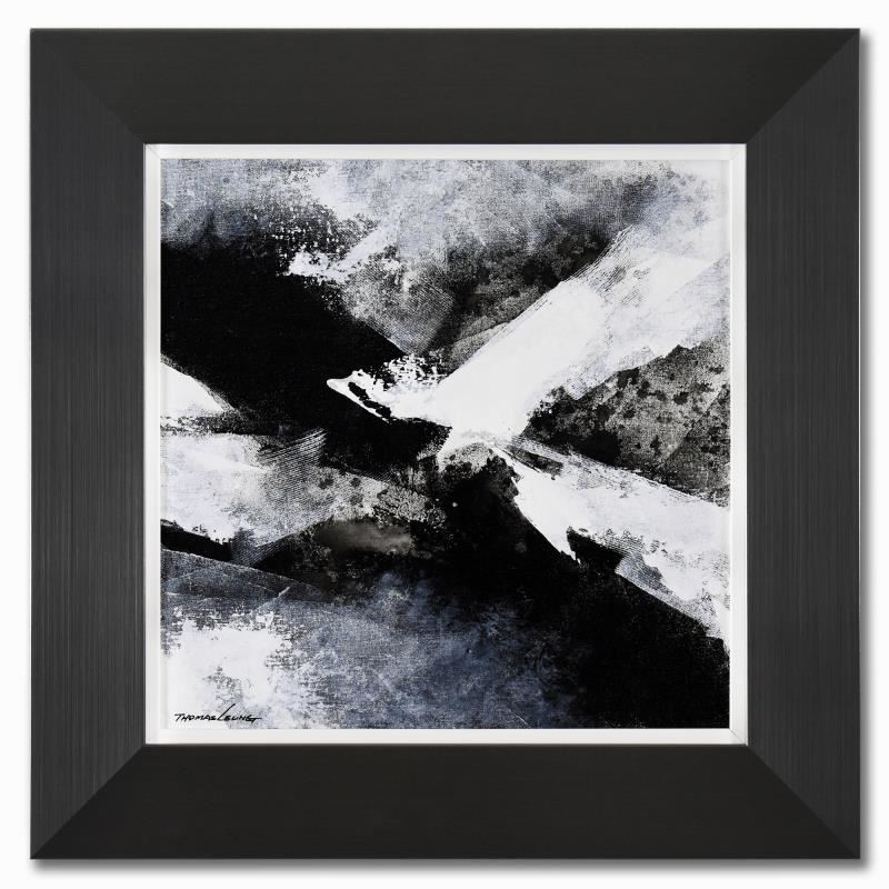 "Abstract Wave 14" is an original acrylic painting on canvas board by Thomas Leung, hand signed by the artist. This piece comes custom framed. Includes Letter of Authenticity. Measures approx. 22.5" x 22.5" (frame), 15" x 15" (image).