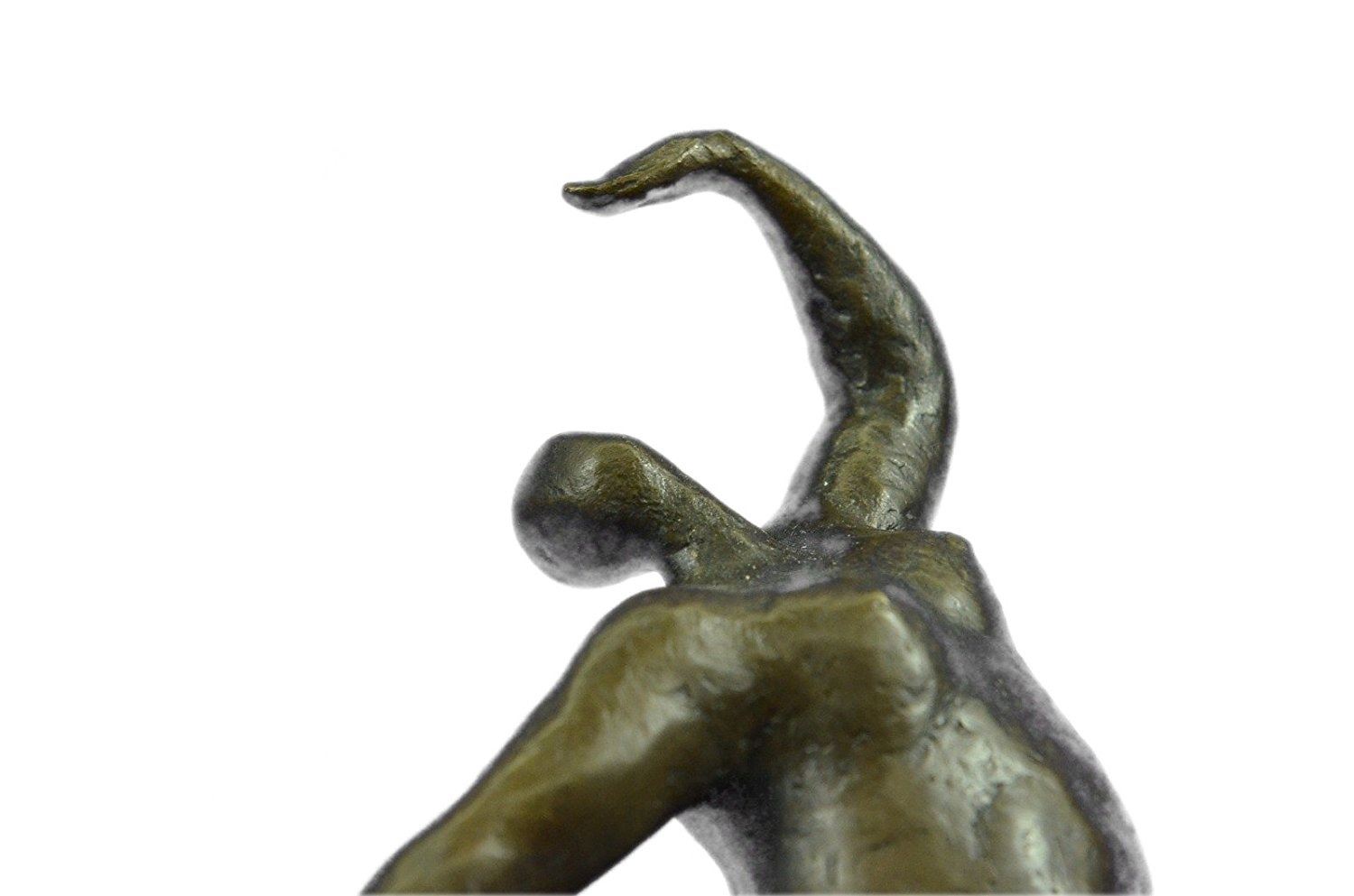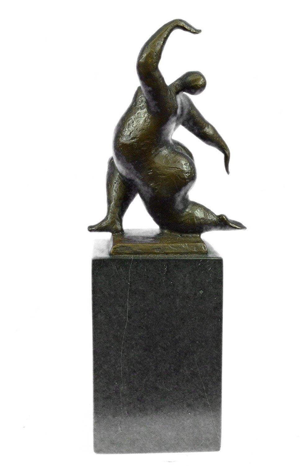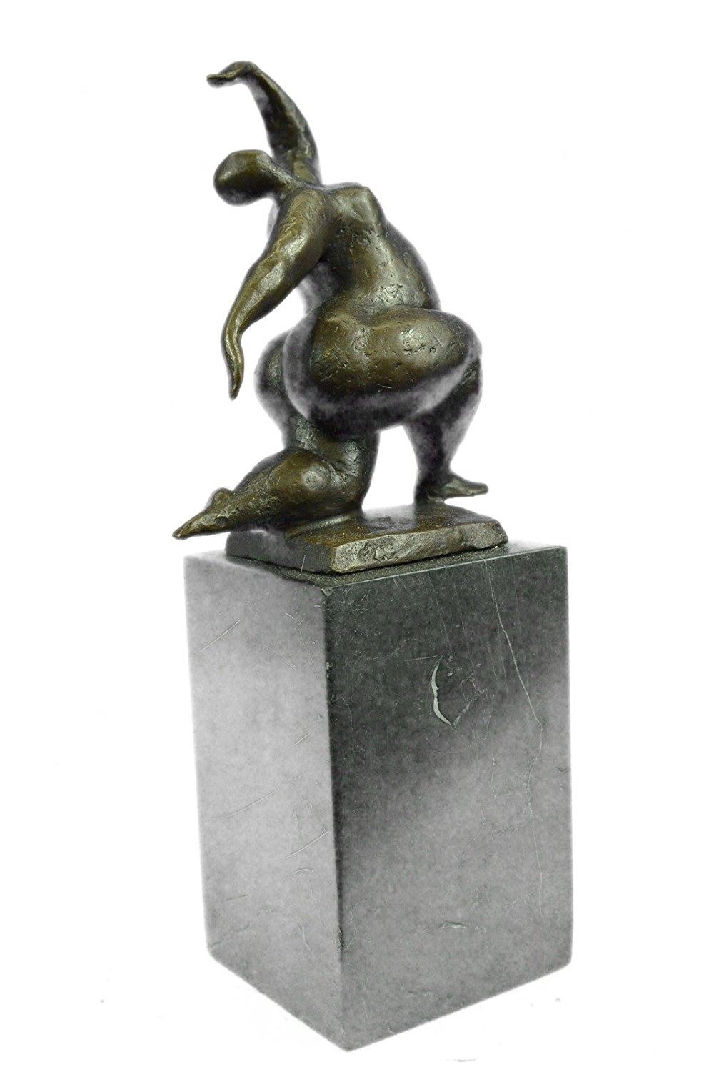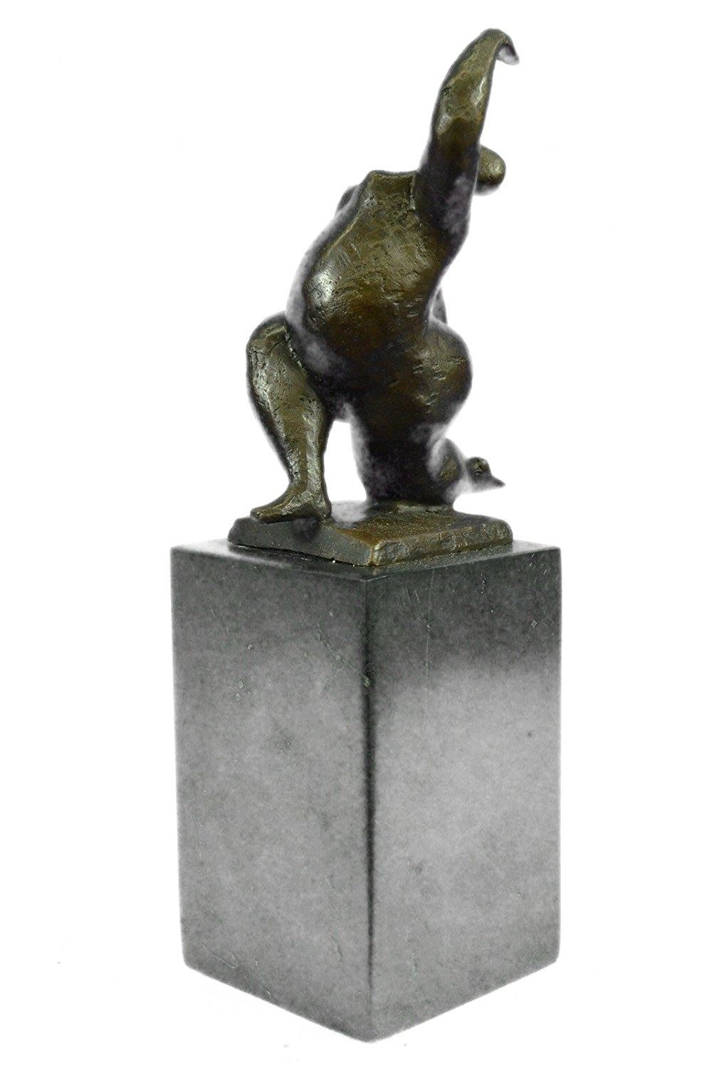 An abstract beauty poses for a portrait. She stretches her long round body. She kneels and curls an arm upward. Like a classic pin-up, she pushes her chest out, tilts her head up and is ready for her close up. 100% bronze and handmade, this brown patina sculpture was cast using the Lost Wax Method and mounted on a marble base. Bronze Dimensions with Marble Base: Height 11 X Width 5 inches. Weight: 9 LBS. Inventory: 65-B7162056
