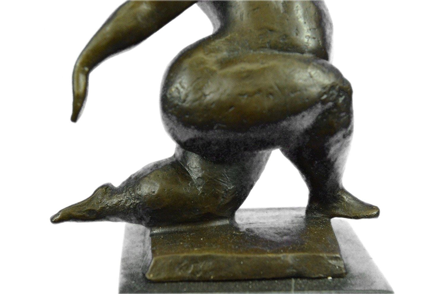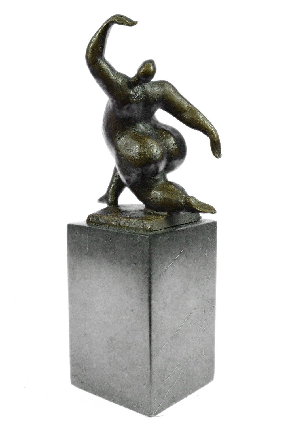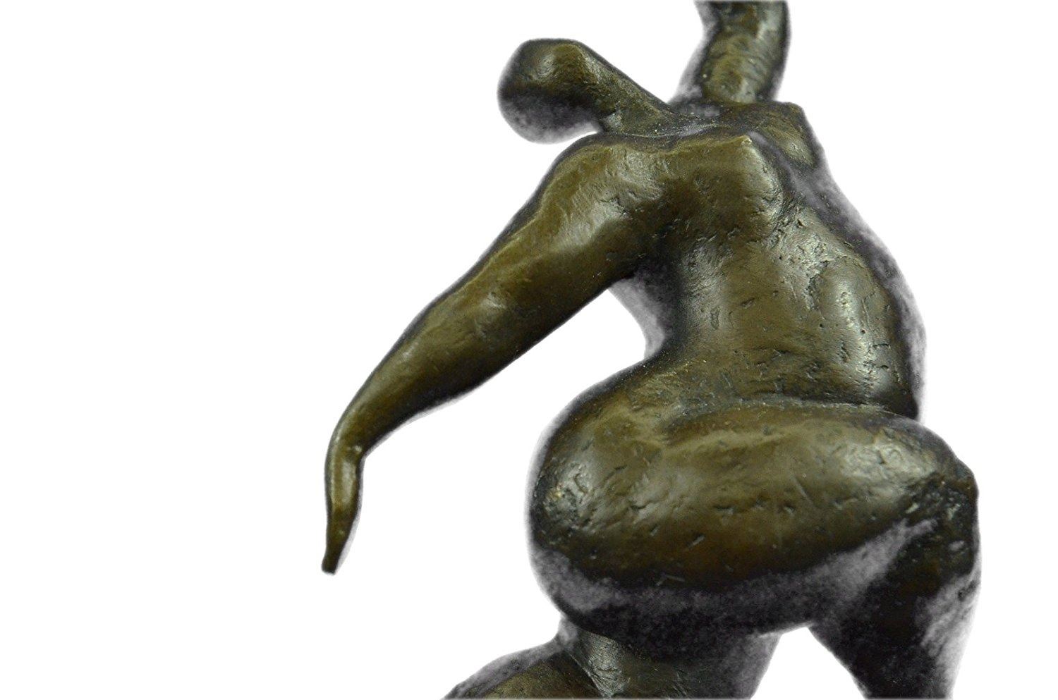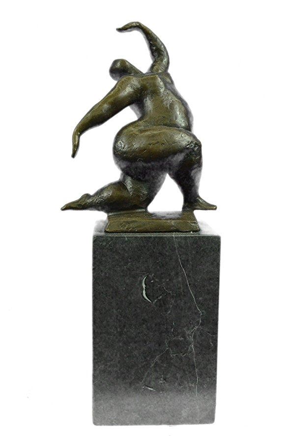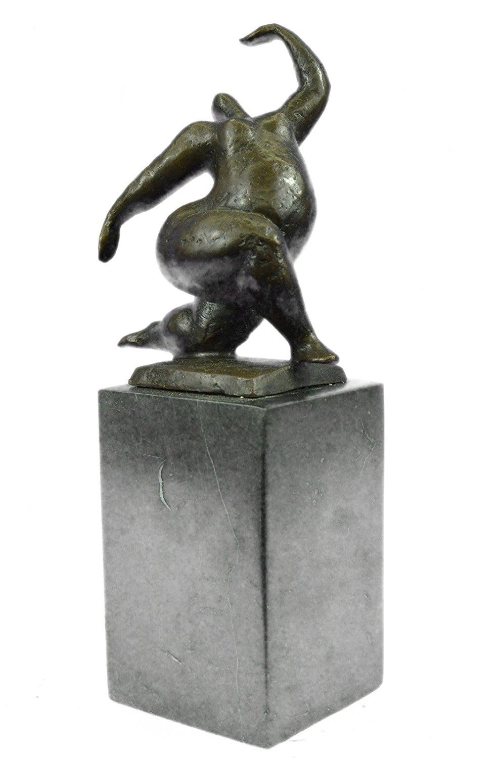 An abstract beauty poses for a portrait. She stretches her long round body. She kneels and curls an arm upward. Like a classic pin-up, she pushes her chest out, tilts her head up and is ready for her close up. 100% bronze and handmade, this brown patina sculpture was cast using the Lost Wax Method and mounted on a marble base. Bronze Dimensions with Marble Base: Height 11 X Width 5 inches. Weight: 9 LBS. Inventory: 65-B7162056