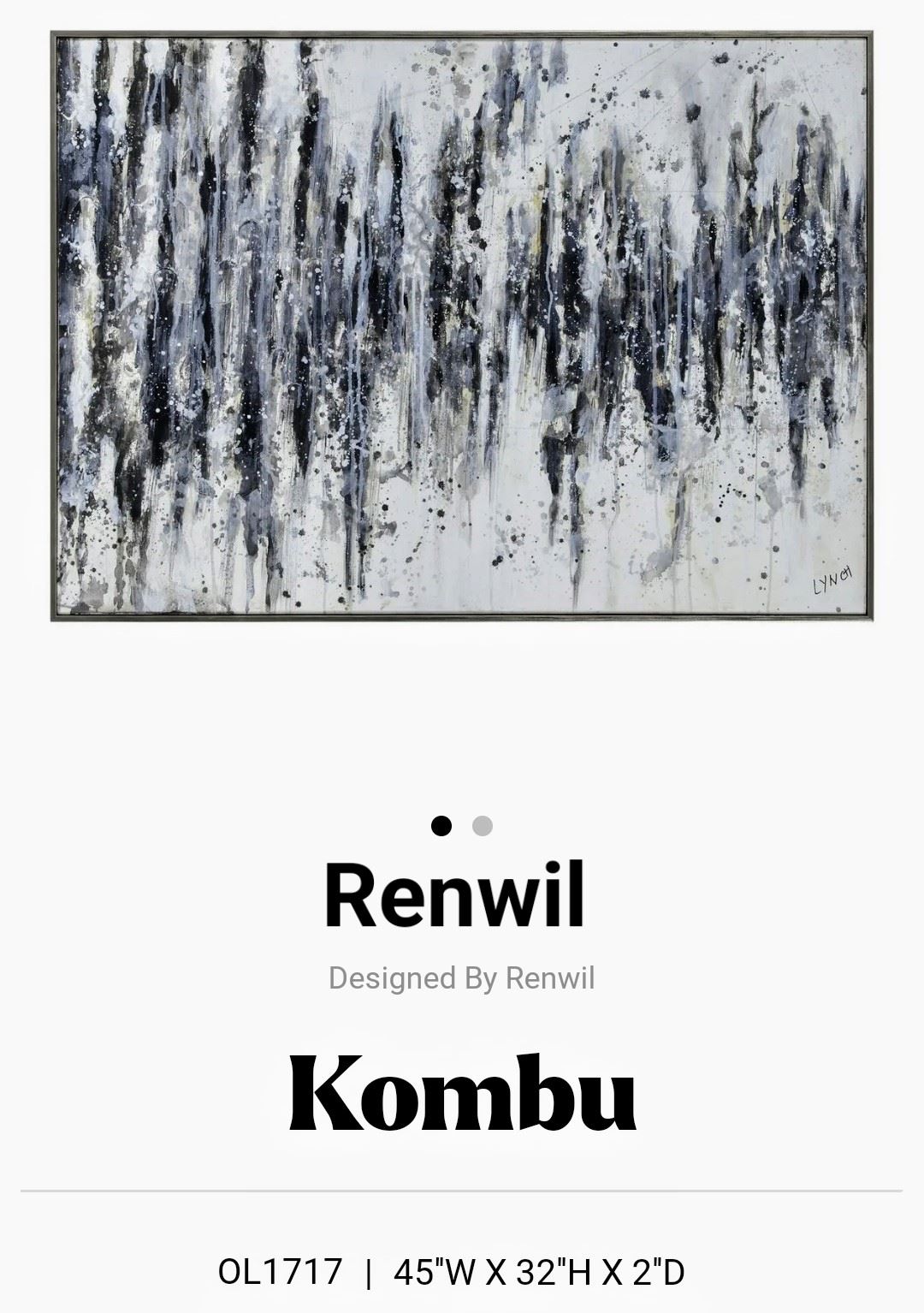 Abstract design on canvas, 45"W x 32"H, contemporary monochrome palette, new.
