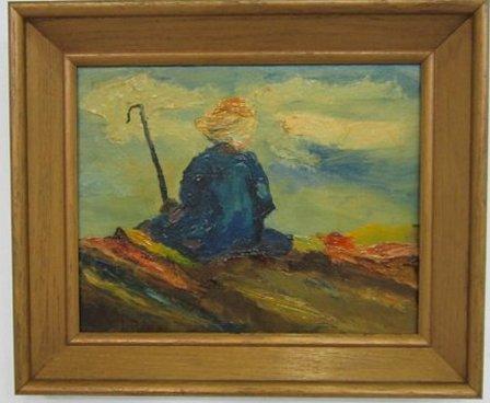 Abstract oil painting "Seated Man with Cane"