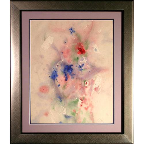 Harold Cohn (1908-1982), was a successful painter, printmaker and teacher working both in Detroit and New Jersey. His work has been exhibited in museums and galleries around the country including, The Detroit Institute of arts (1933-45), The Carnegie Institute (1941&43), The Los Angeles Museum of Art (1945), The Pennsylvania Academy of Fine Arts (1934), and the Virginia Museum of Fine Arts (1942). During his extensive career, Cohn explored many different elements of contemporary art. These influences can be seen in many of his drawings and paintings; much of his experimentation is thought to be reminiscent of Matisse?s art work. With such a striking comparison, it is no wonder that Cohn has such an extensive auction record. ?Abstract? is one of Cohn?s original watercolors and is an abstract painting that invites the viewers to form their own interpretations. Cohn employed the wet-on-wet technique to create this large amorphous composition. To work wet-on-wet the artist saturates the paper with water and applies the pigment to the wet surface allowing it to bleed into all other wet areas freely, mixing colors and creating interesting textures as in ?Abstract.? The areas of bold blue bleed into the areas of burgundy creating multiple shades of violet. There are also areas of green to compliment the red-violet tones in the piece. This wonderfully fluid composition is complimented perfectly by the blue-violet lower mat and lavender top mat that it is mounted beneath. The ...