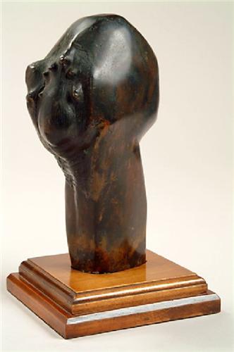 Wasie, C. bronze with wood base, signed and dated 1976, 11" by 7" by 5".