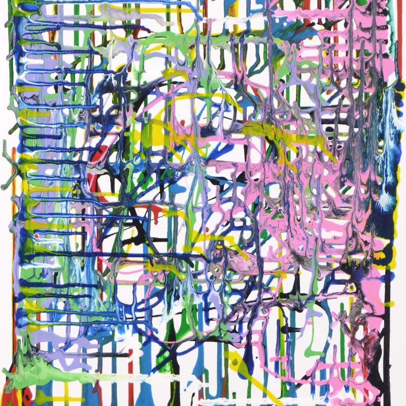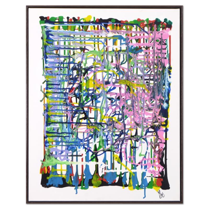 "Abstraction 3" is an original acrylic painting on canvas by George Marlowe, hand signed by the artist. This piece comes framed. Includes Certificate of Authenticity. Measures approx. 22.5" x 29" (frame), 21.5" x 27" (image). There is minor wear on the corners and edges of the frame.