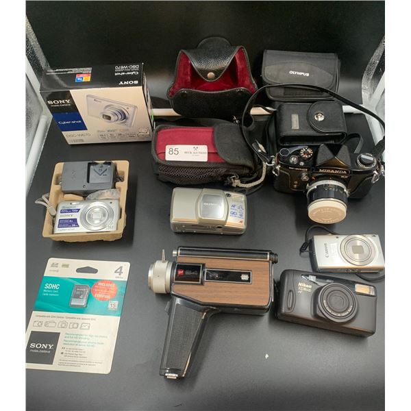 Vintage Camera Plus Newer Camera Lot Sony Cybershot DSC-W670 With 4GB Card Canon Powershot Elph 180 GAF 64 Movie Camera Miranda Sensomat RE