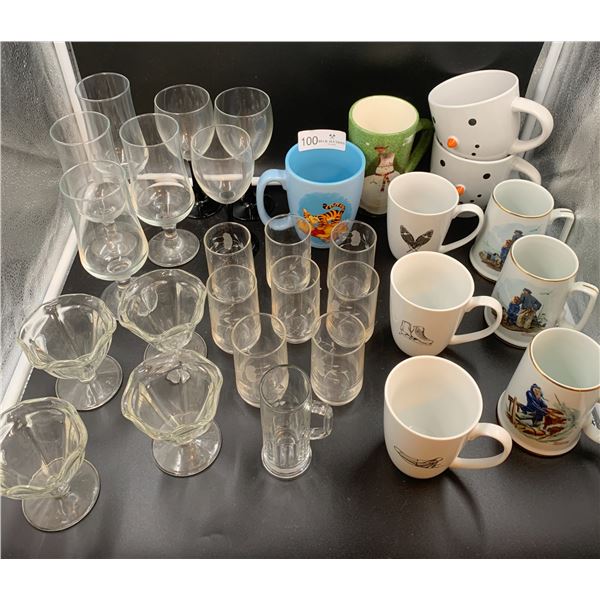 Large Lot of Glassware a Disney Mug and Norman Rockwell Mugs