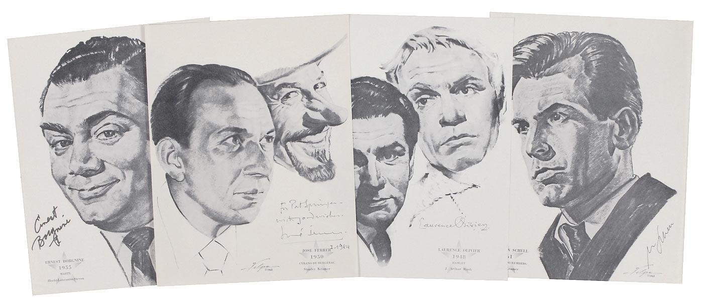Four Volpe prints, 8 x 10.25, each signed in felt tip or ink by the respective Academy Award winner pictured. Signers are: Laurence Olivier, Maximillian Schell, Ernest Borgnine, and Jose Ferrer (ins). In fine overall condition.