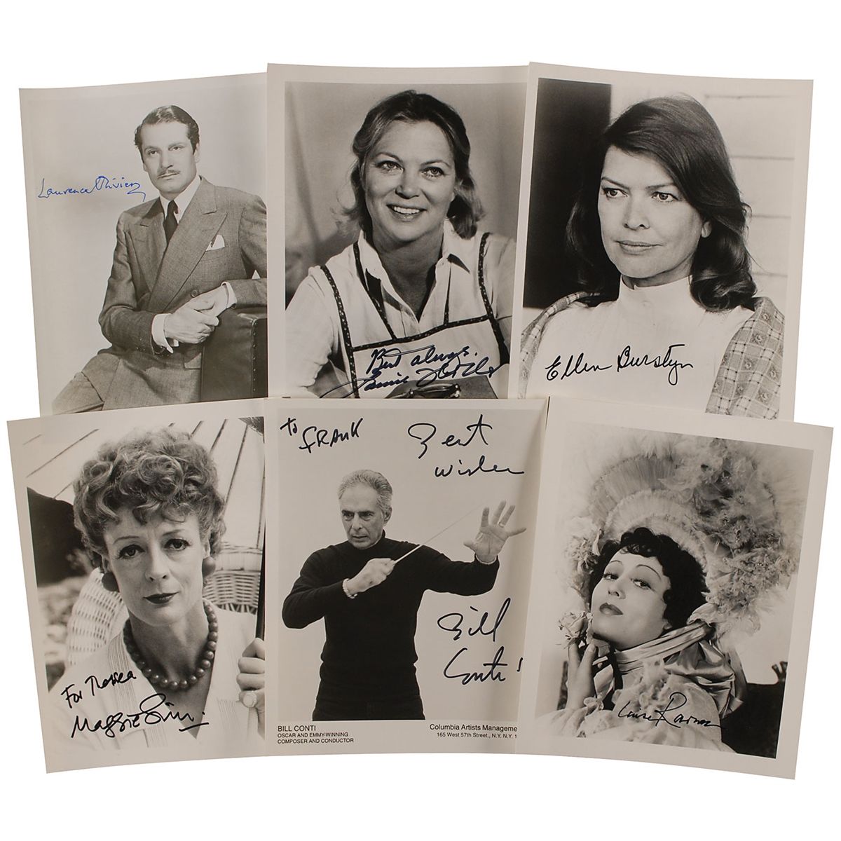 Six glossy and satin-finish 8 x 10 photos, each signed in felt tip by the Academy Award winner pictured. Signers are: Laurence Olivier, Luise Rainer, Louise Fletcher, Maggie Smith (ins), Ellen Burstyn, and Bill Conte (ins). In overall fine condition.