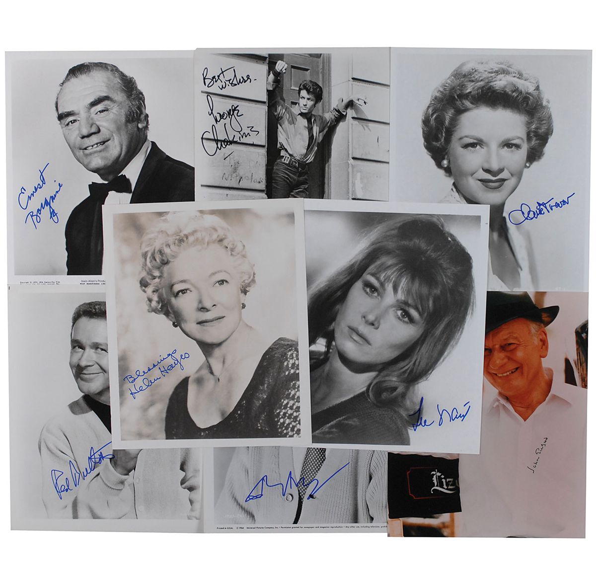 Eight glossy 8 x 10 photos, including one color, each signed in felt tip by the Academy Award–winner pictured. Signers are: Ernest Borgnine, George Chakiris, John Mills, John Gielgud, Claire Trevor, Helen Hayes, Lee Grant, and Red Buttons. In overall fine condition.