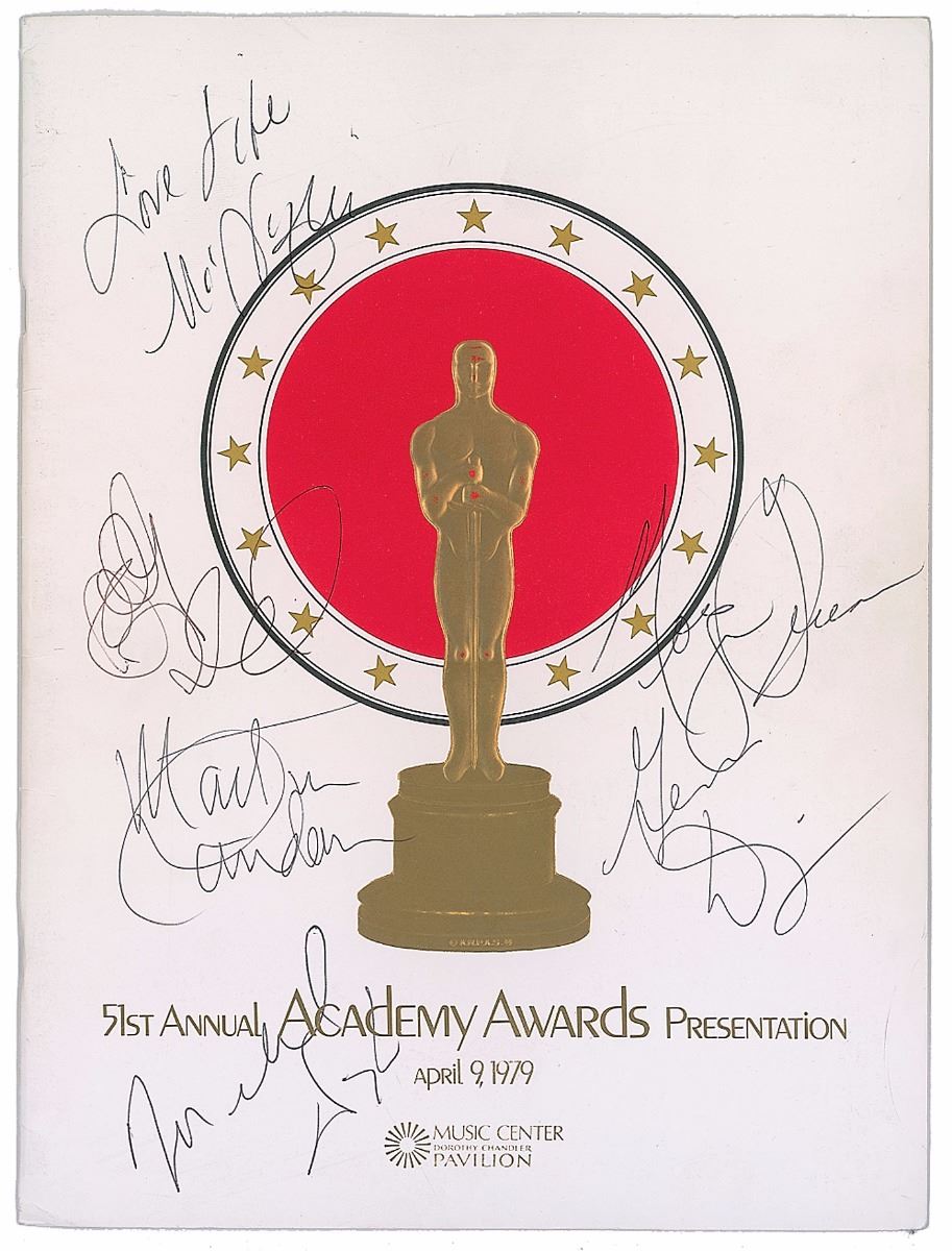 Program from the 51st Annual Academy Awards Presentation held on April 9, 1979, 9 x 12, signed on the front cover in black ballpoint by six Oscar winners, including: Michael Douglas, Martin Landau, Geena Davis, Sally Field, Morgan Freeman, and Mo’Nique, who adds, “Love Life.” In fine condition, with expected handling wear.