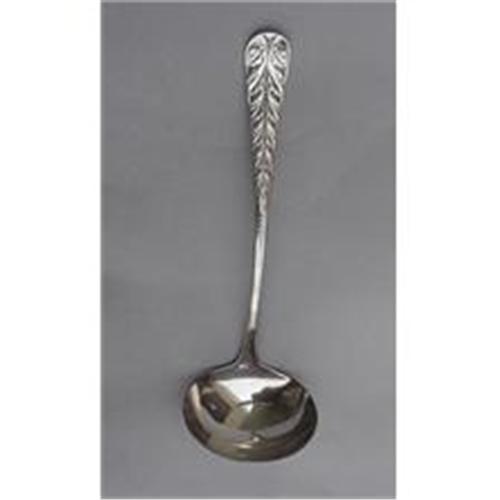 This is a perfect 13" soup ladle. The Acanthus pattern by Rogers & Bros. was designed around the turn of the century. No heal wear to the piece.