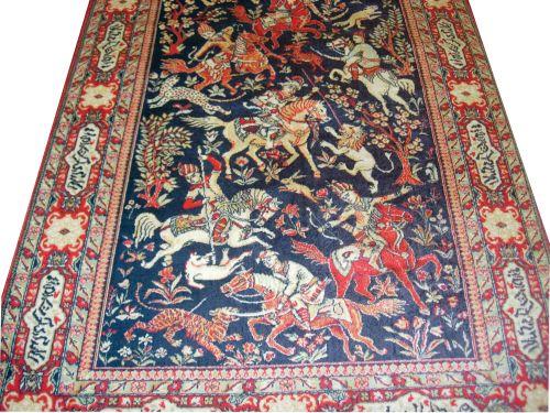 Accent Rug w/ Hunt Design. Good condition. Aprox 5 X 7 oblong.