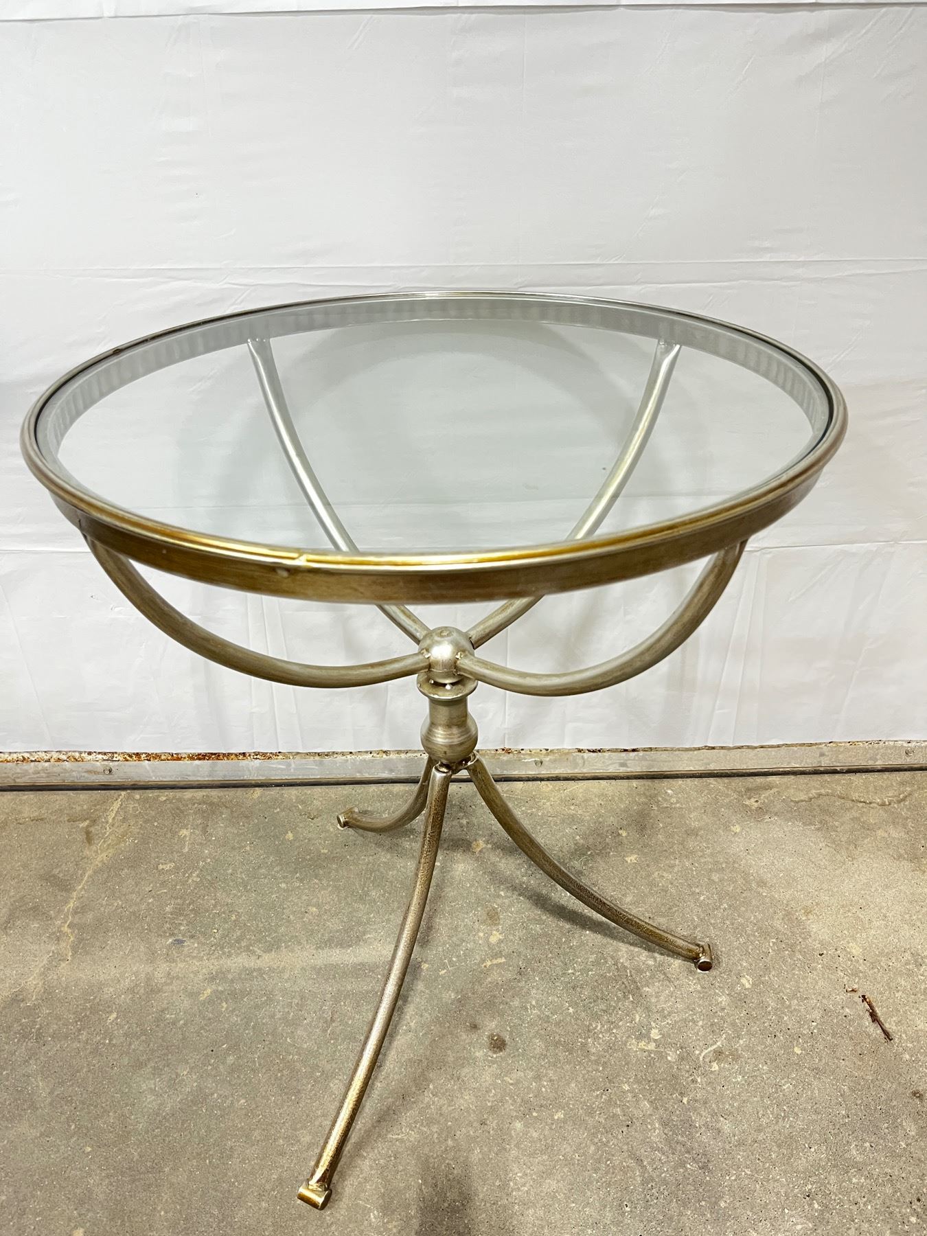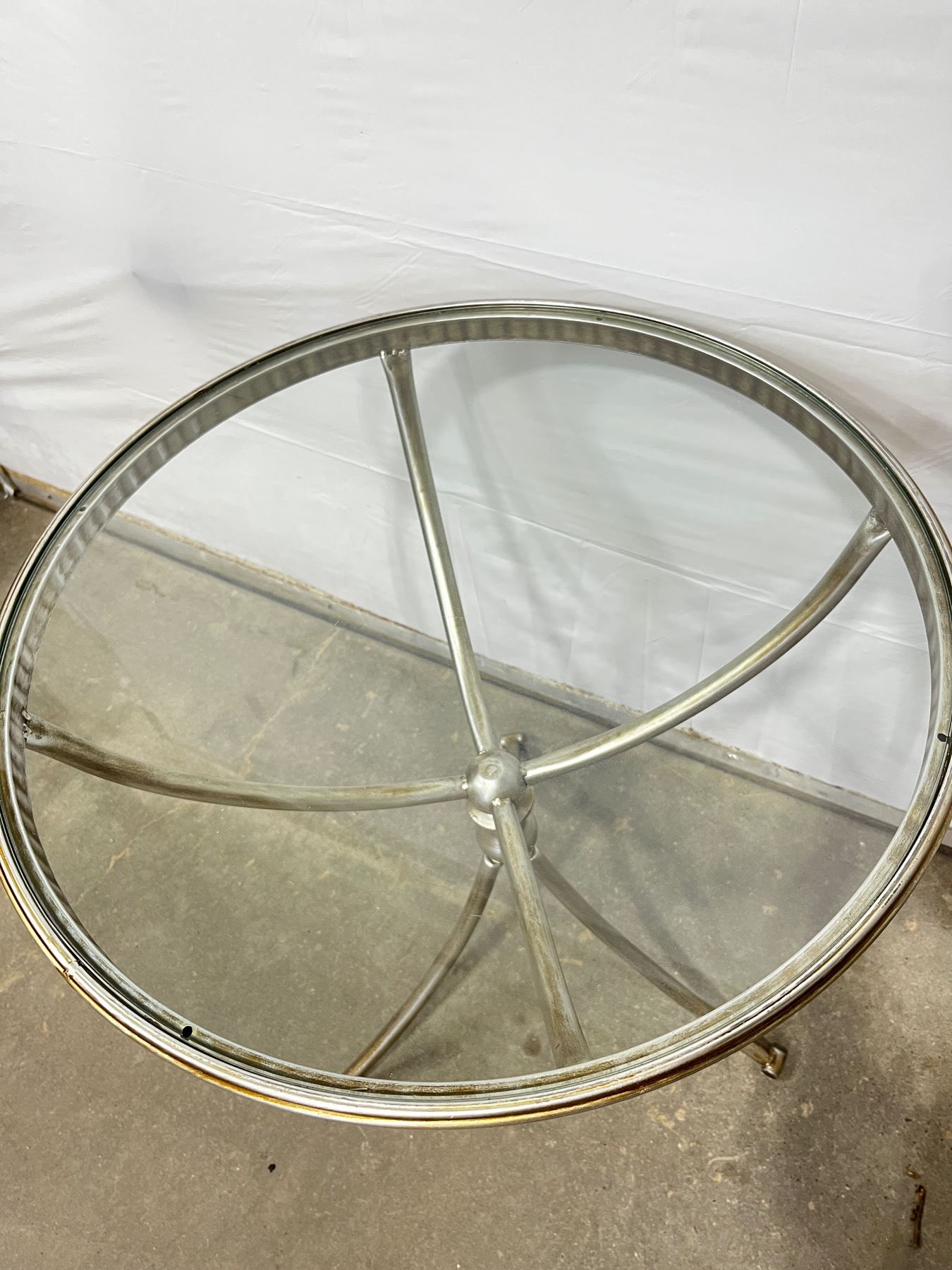 Glass top with silver finish. 29"H x 24" diameter