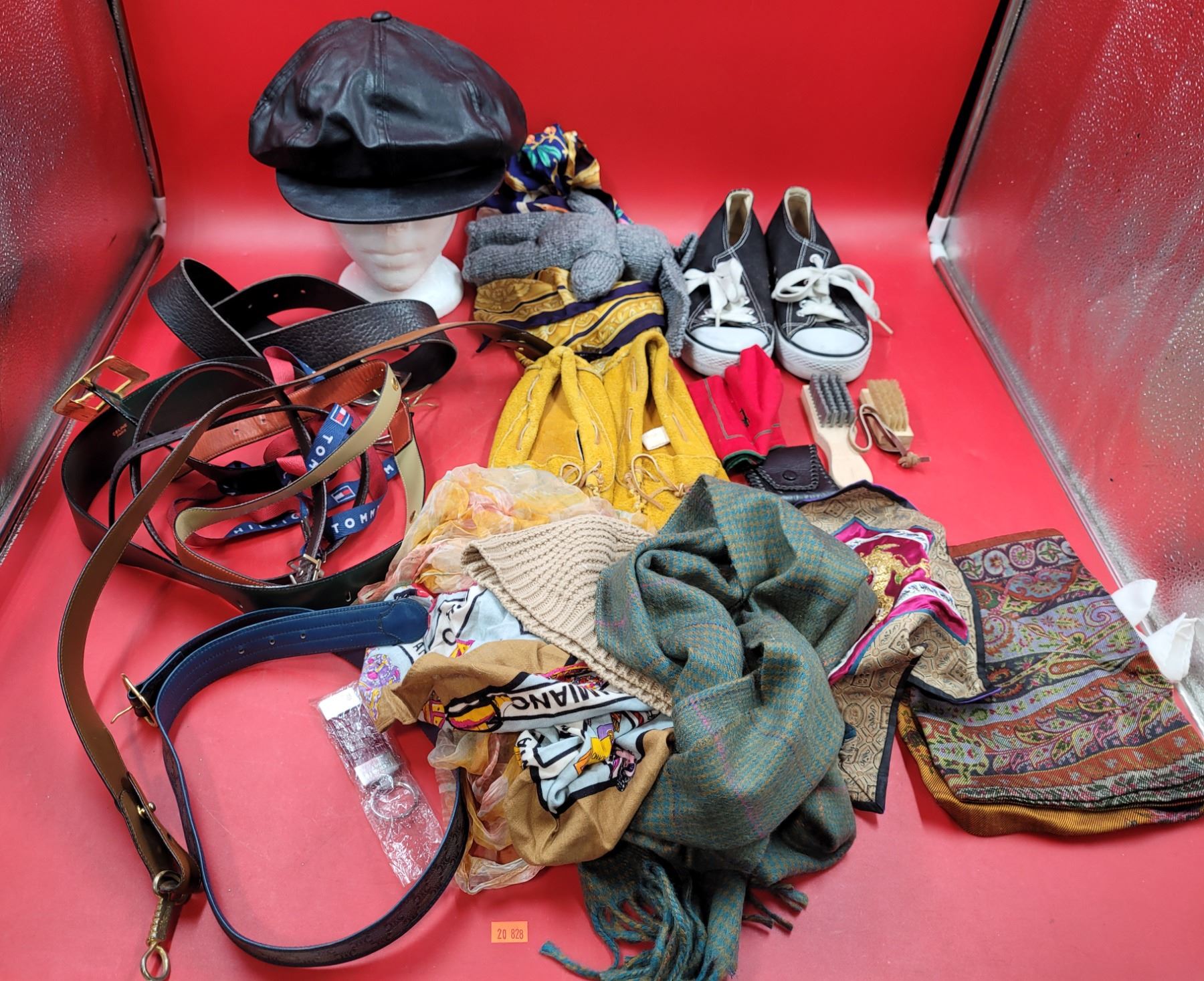 Accessory Lot w/ Tommy Hilfiger Belt, Assorted Scarves, Leather Hat, & More