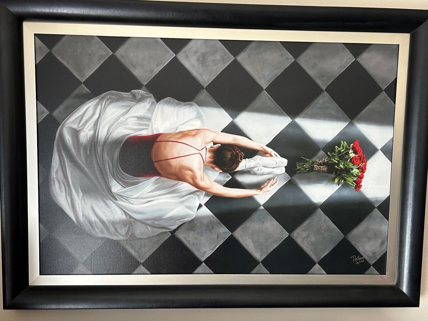 A ballerina takes a moment for her accolades in this 32x48" giclee ion canvas, by DELLORCO, in a magnificent 55.25x39.25" frame.